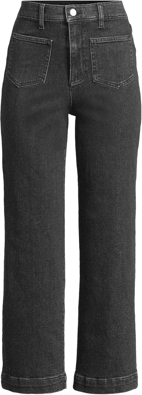 Lands’ End Women’s Denim High Rise Wide Leg Crop Jeans(Black Stone Wash)