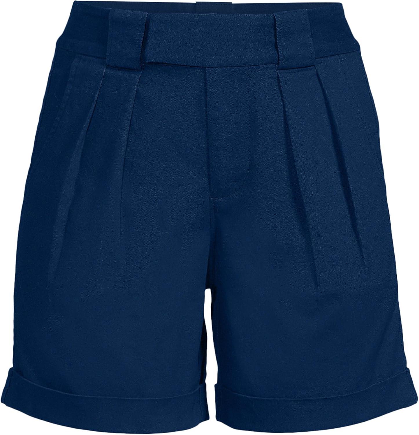 Lands’ End Women’s Chino High Rise Pleated 7″ Shorts(Deep Sea Navy)