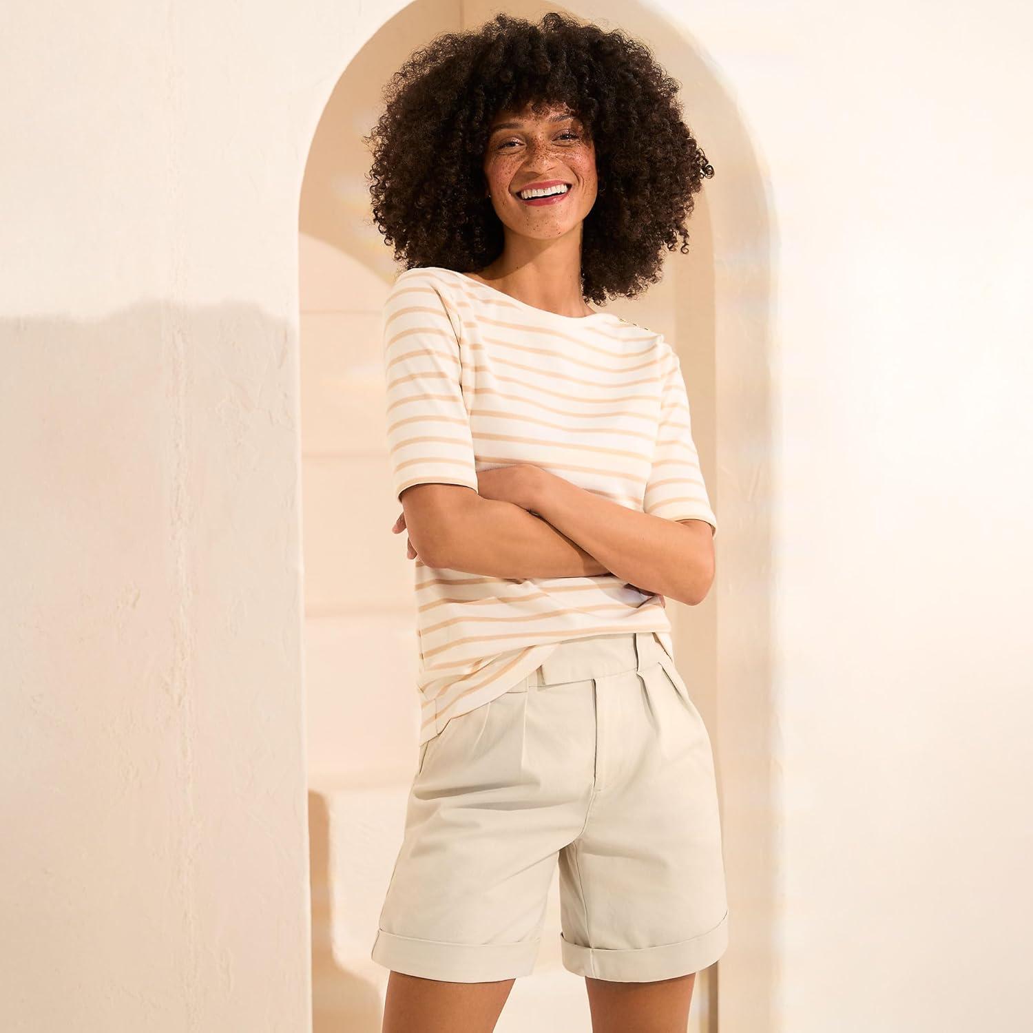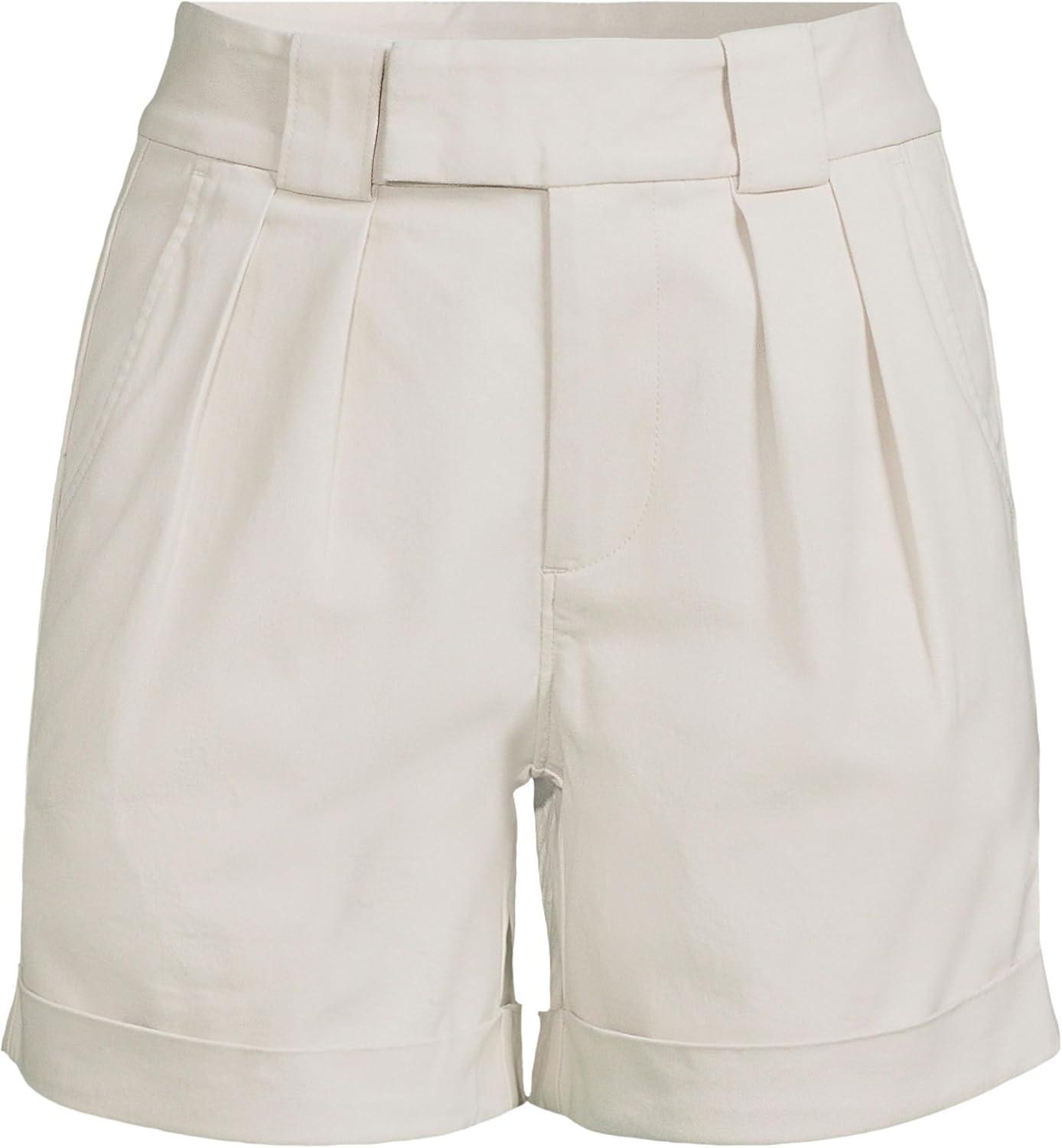 Lands’ End Women’s Chino High Rise Pleated 7″ Shorts(Light Stone)