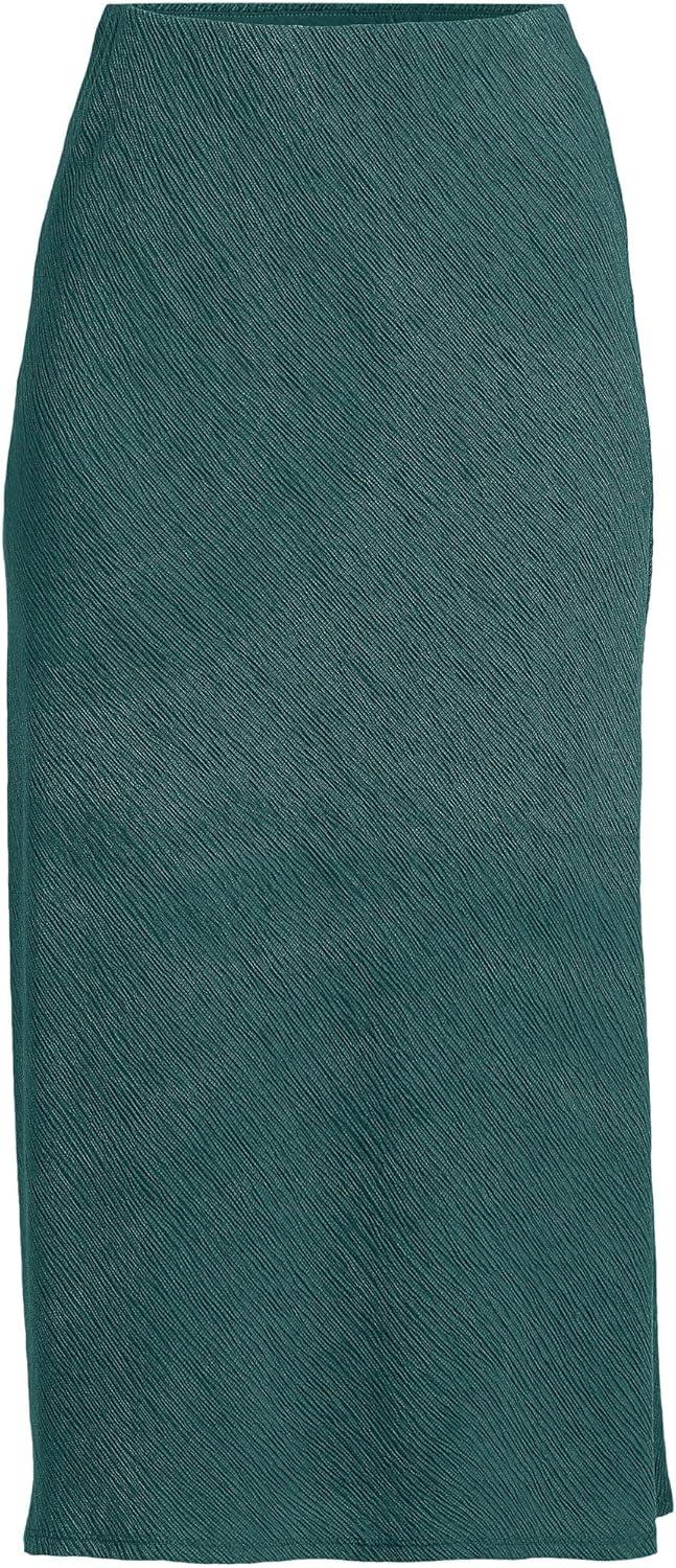 Lands’ End Women’s Crinkle Midi Skirt(Deep Forest)