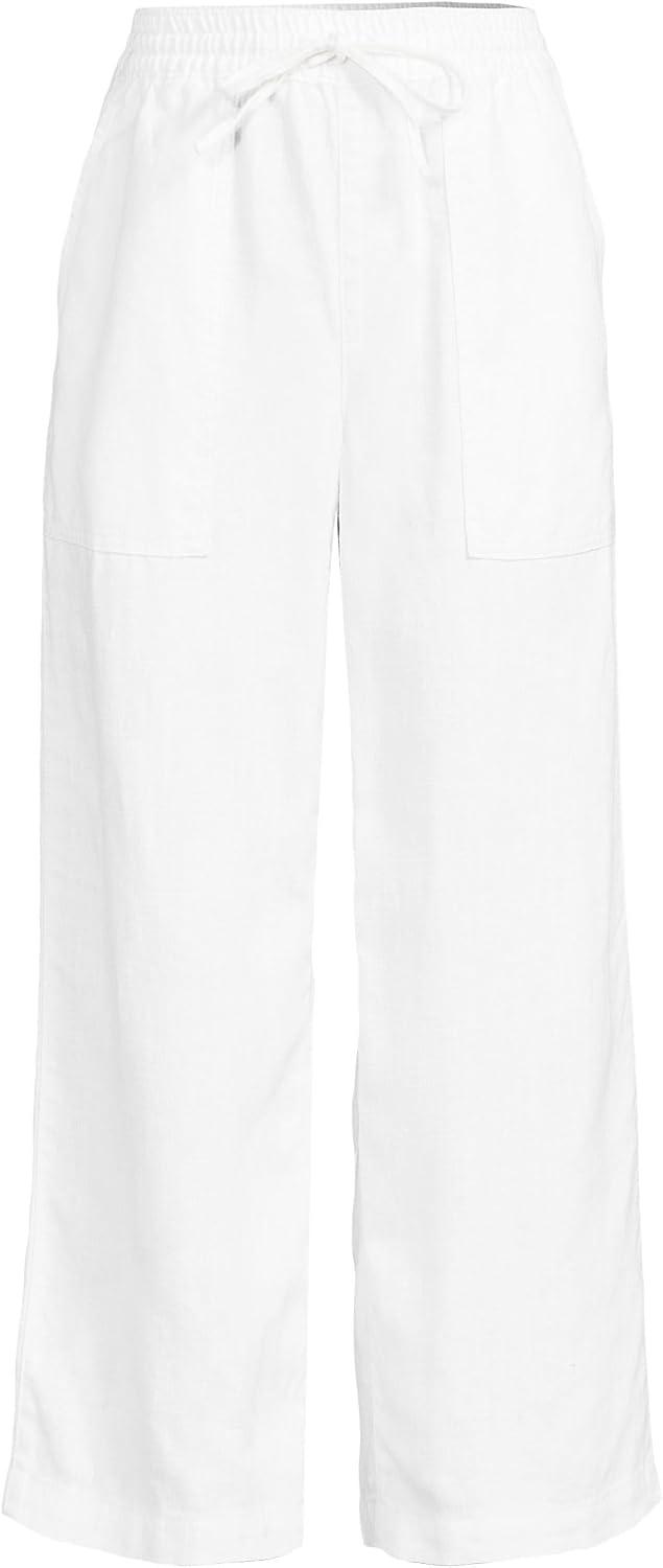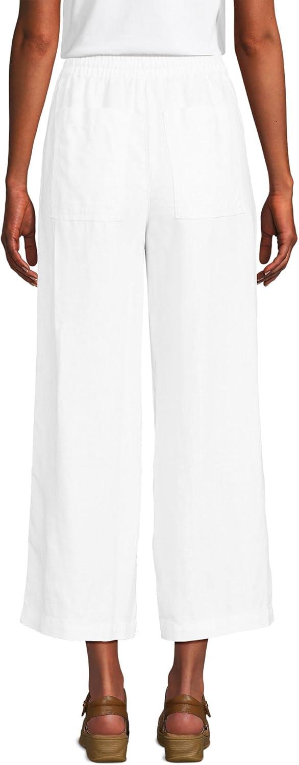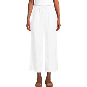 Lands’ End Women’s High Rise Pull On Drawstring Linen Wide Leg Crop Pants(White)