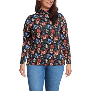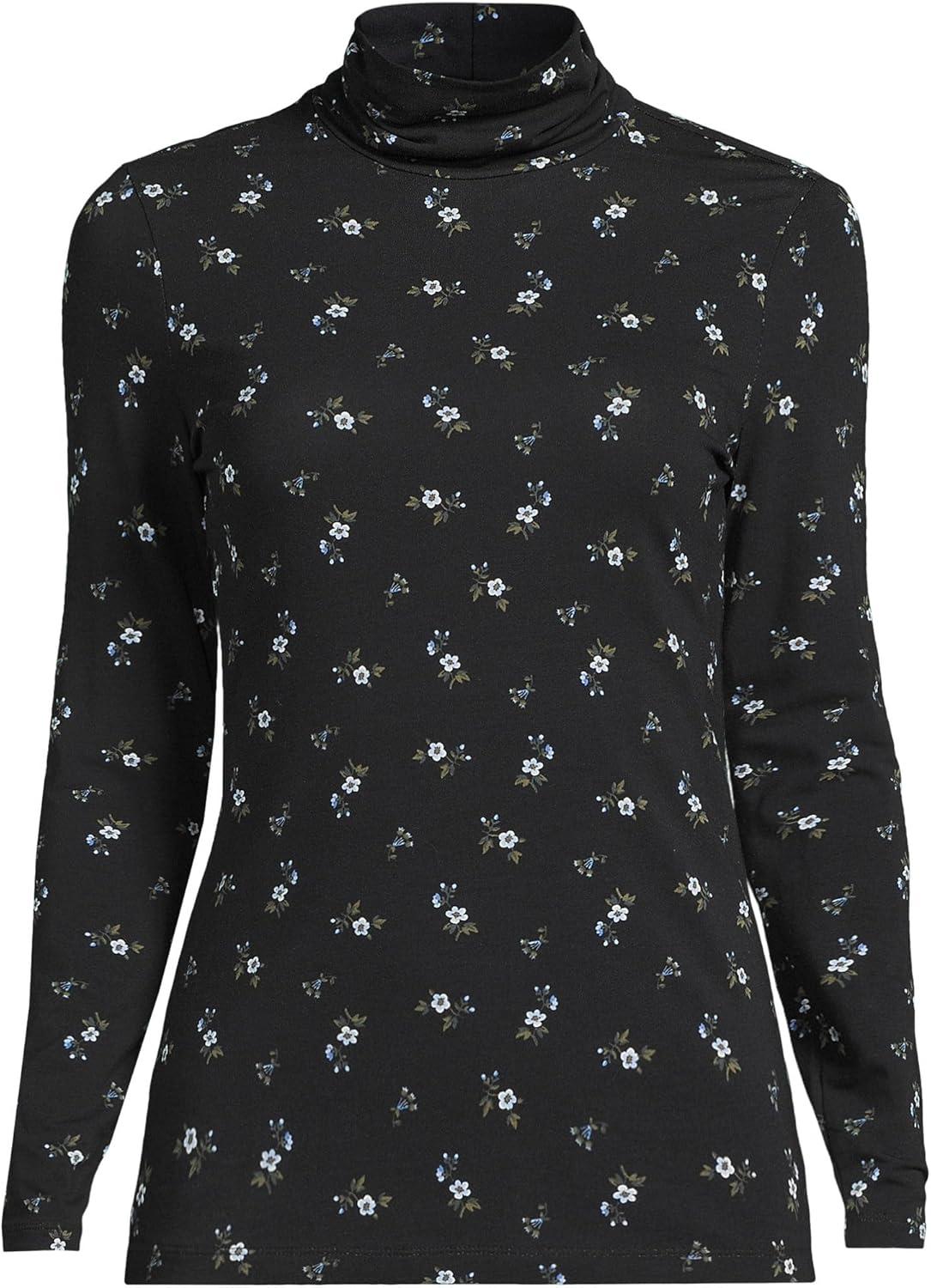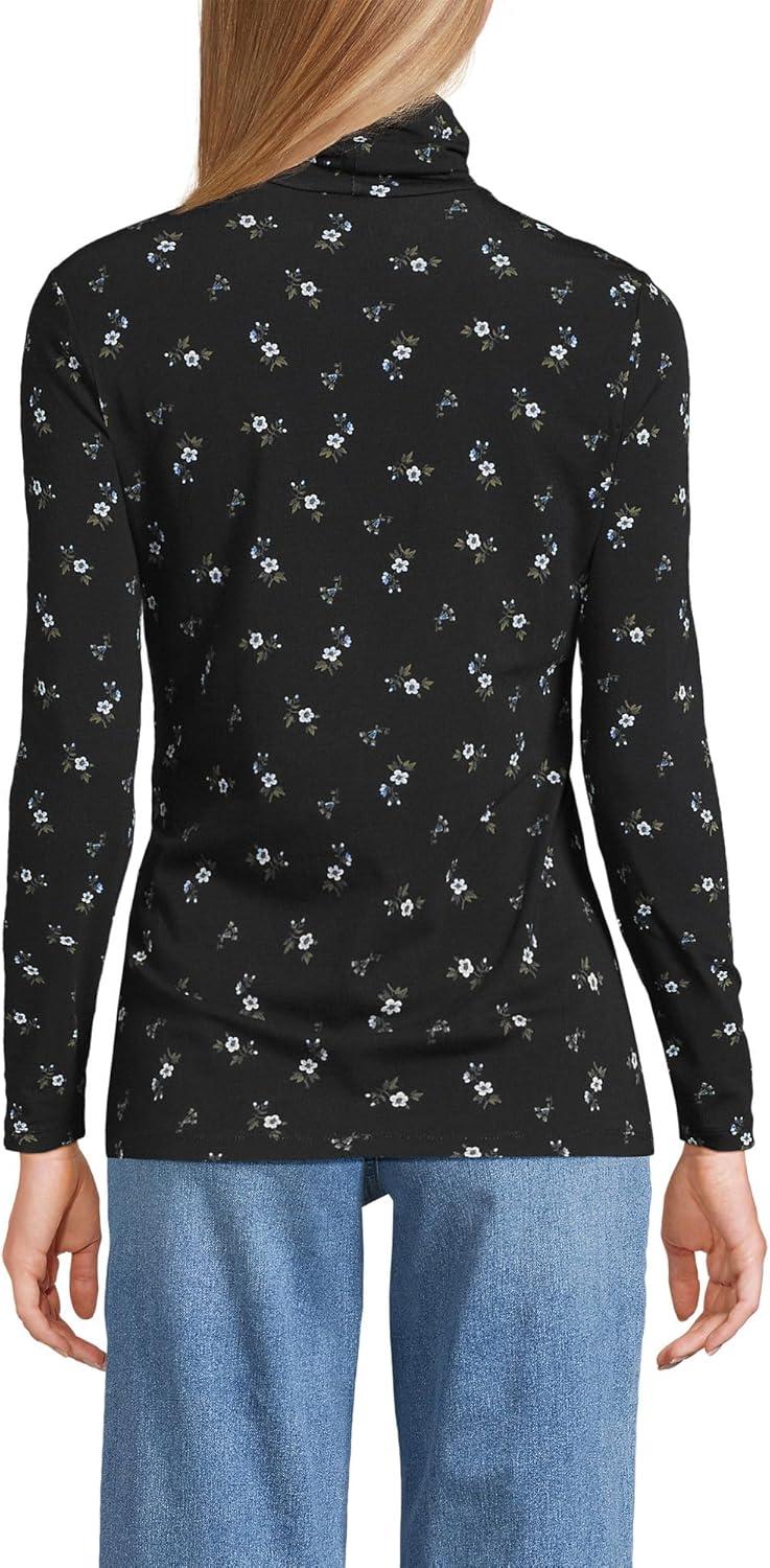 Lands’ End Lightweight Jersey Long Sleeve Turtleneck(Black Multi Floral)