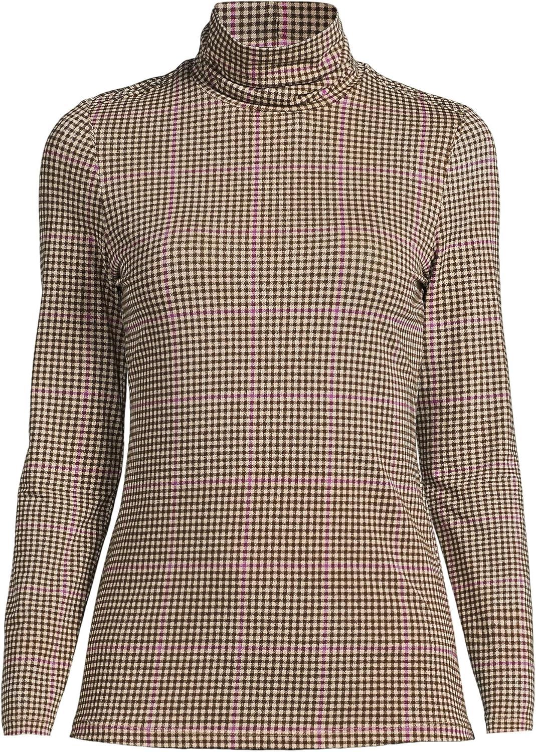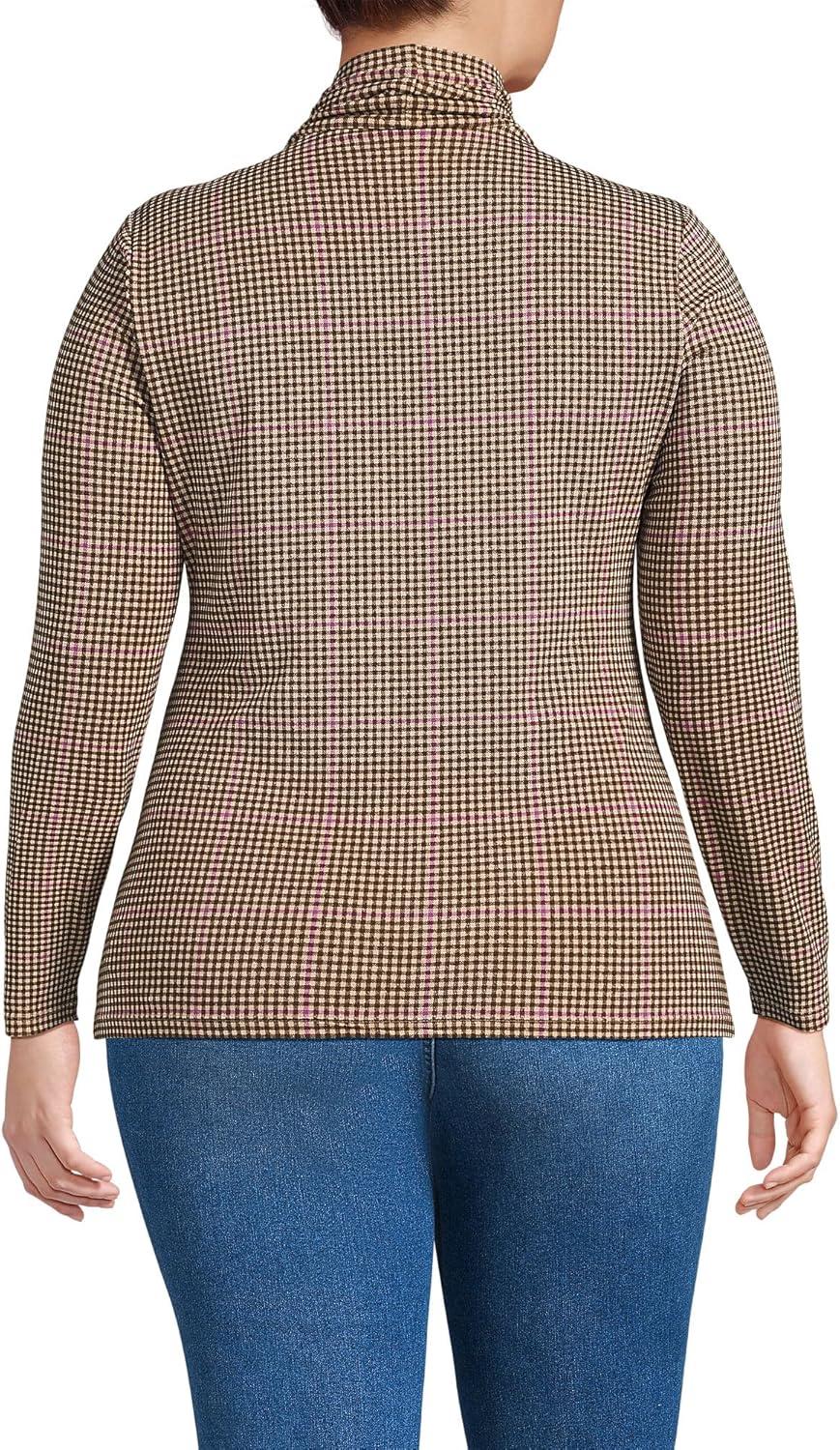 Lands’ End Lightweight Jersey Long Sleeve Turtleneck(Champagne/Brown Plaid)