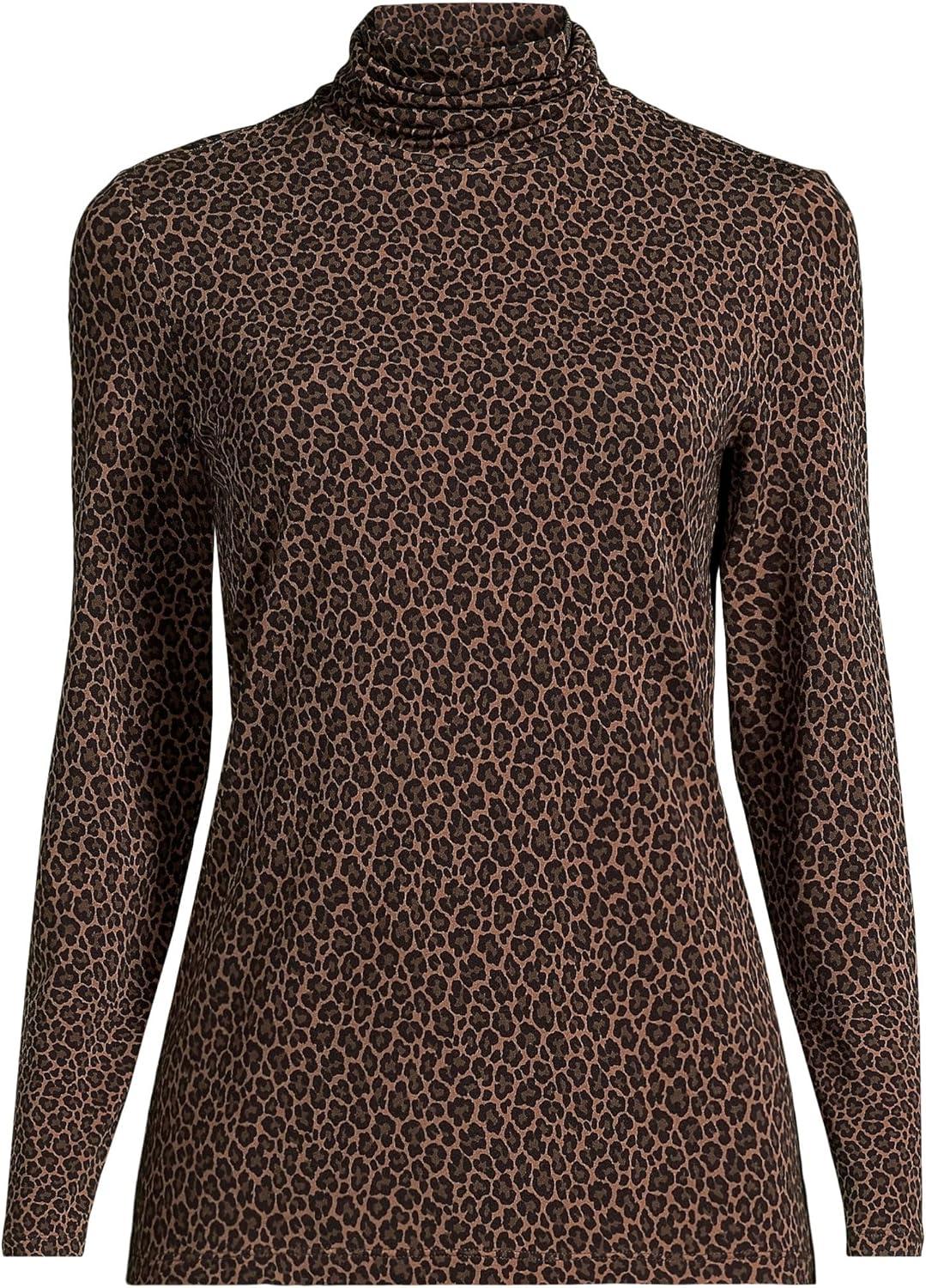 Lands’ End Lightweight Jersey Long Sleeve Turtleneck(Dark Clay Animal Spots)