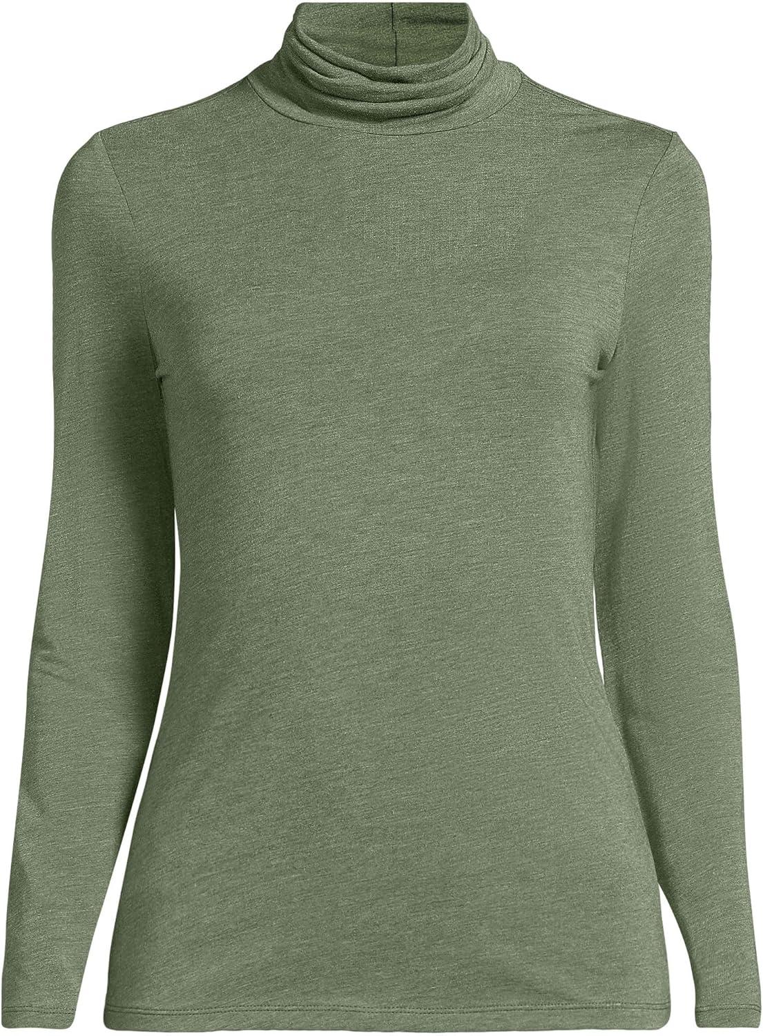 Lands’ End Lightweight Jersey Long Sleeve Turtleneck(Estate Green Heather)