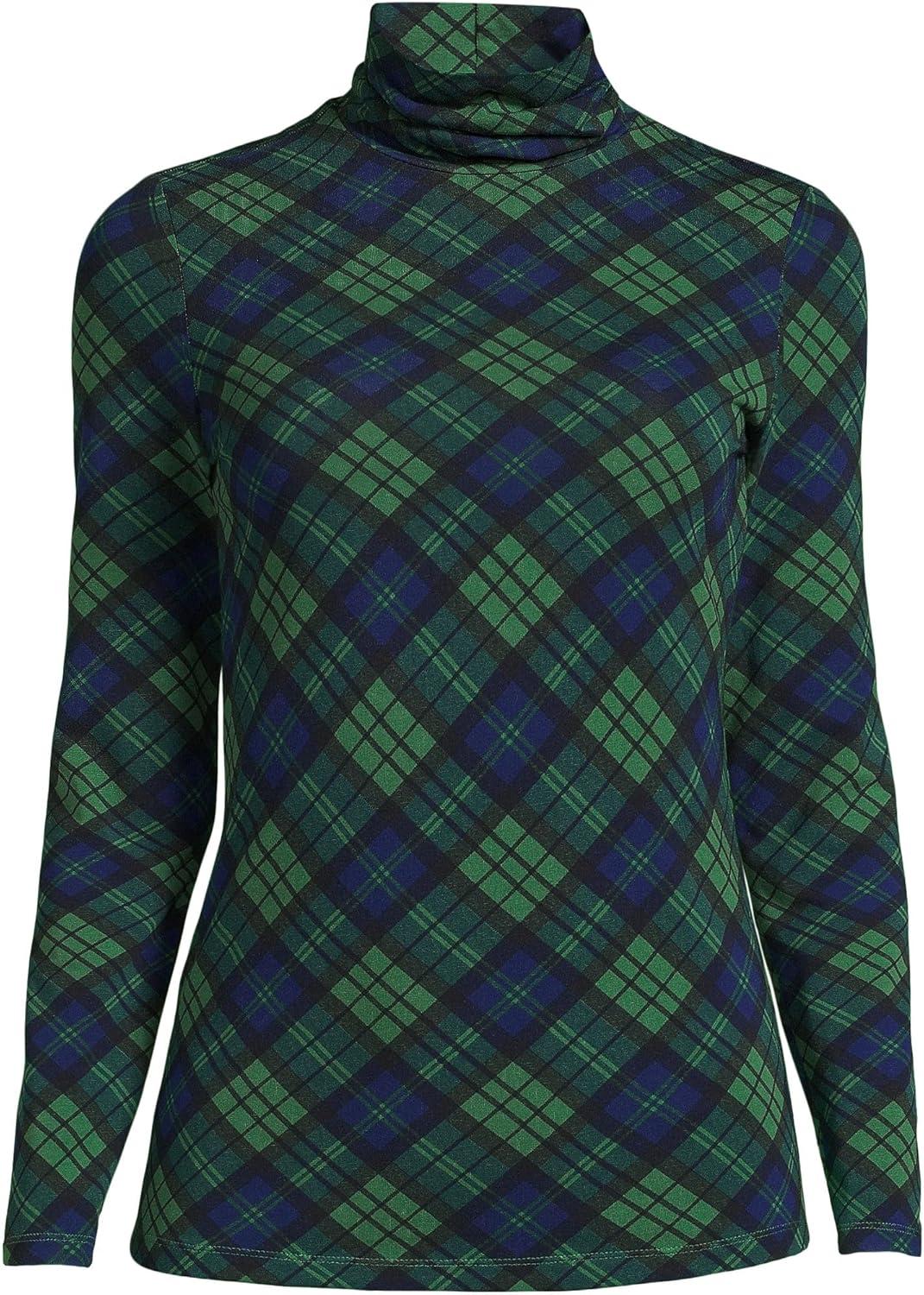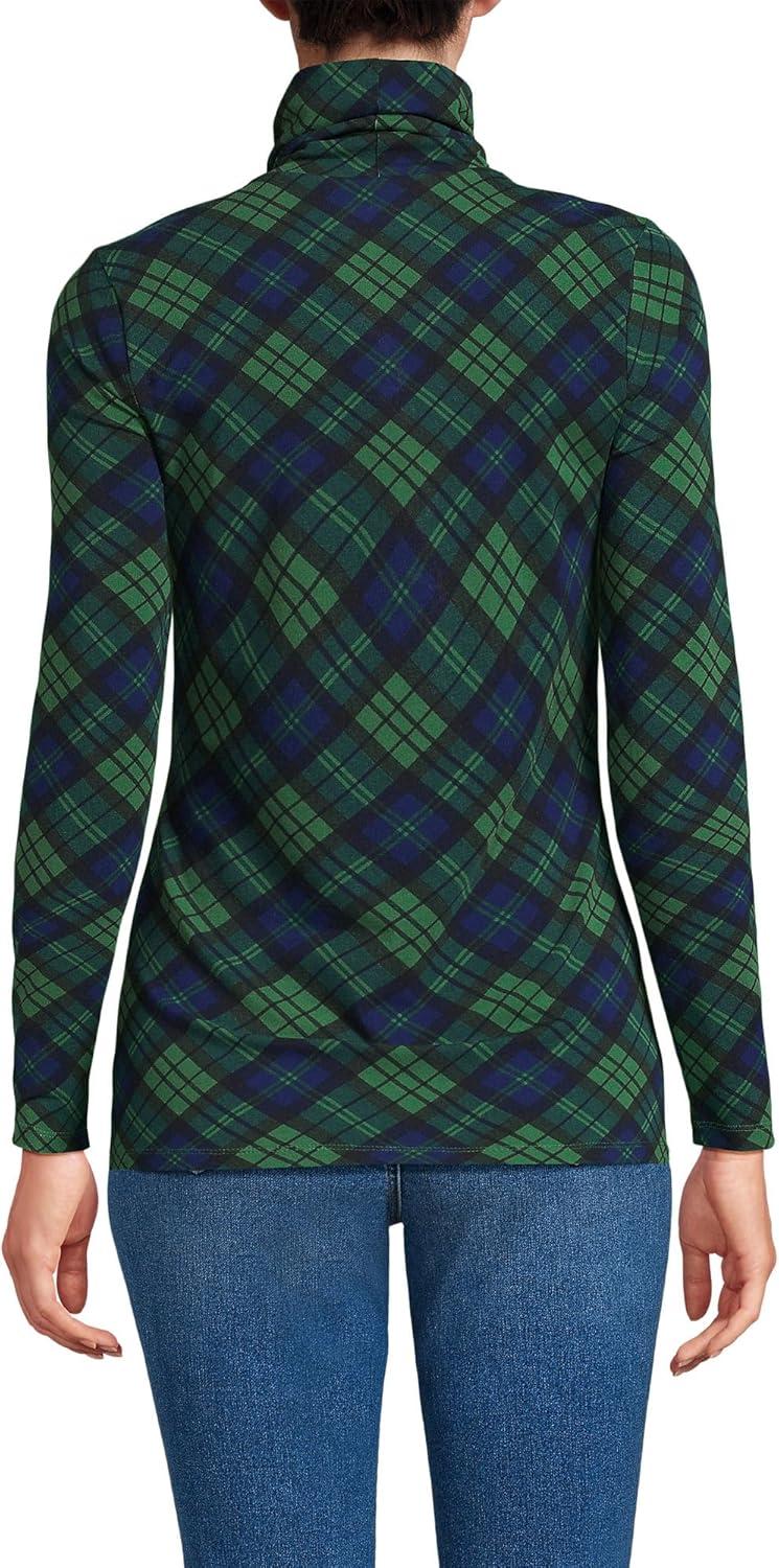 Lands’ End Lightweight Jersey Long Sleeve Turtleneck(Light Emerald Blackwatch Plaid)