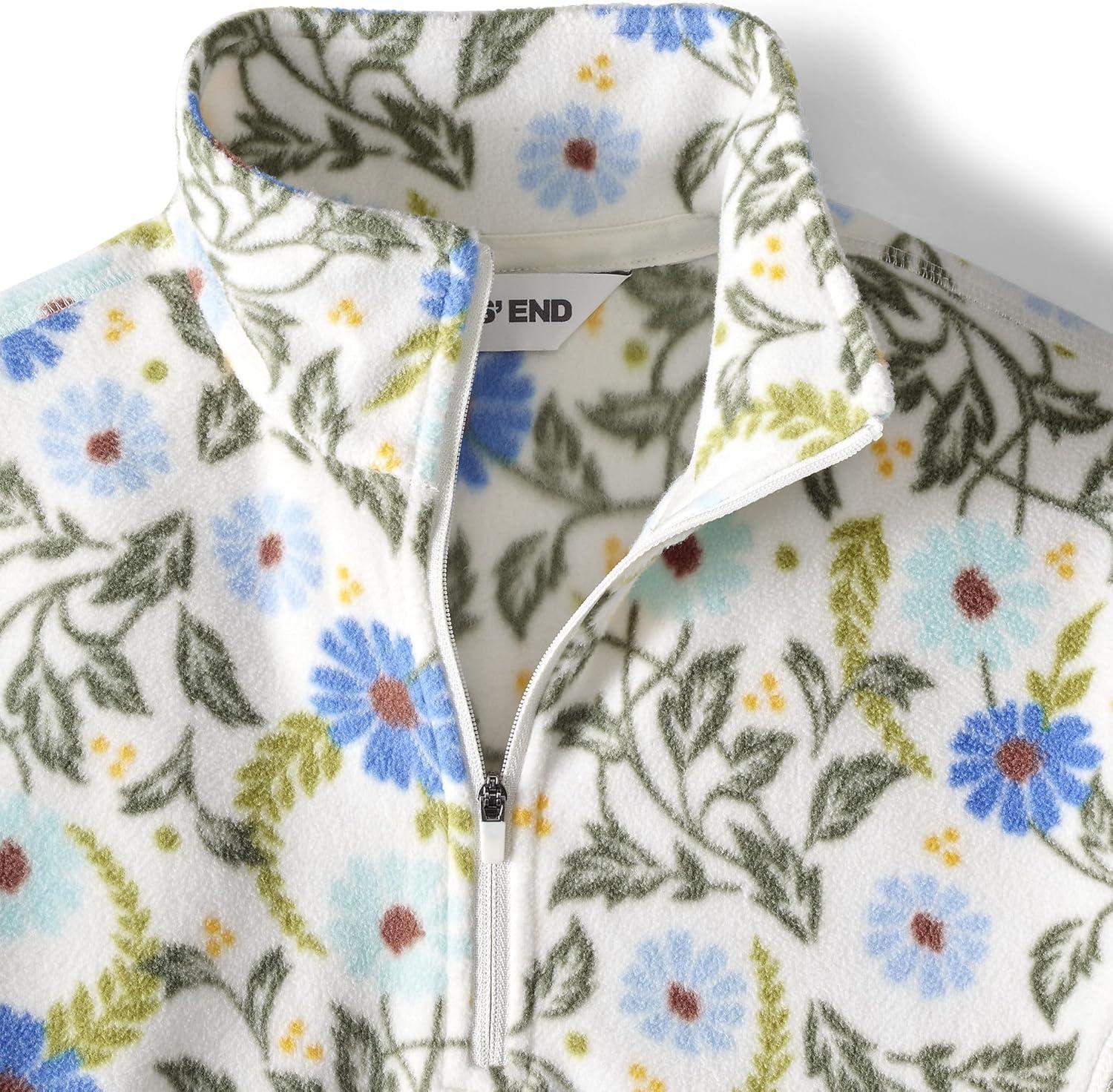 Lands’ End Anyweather Fleece Quarter Zip Pullover(Blue Allover Floral)