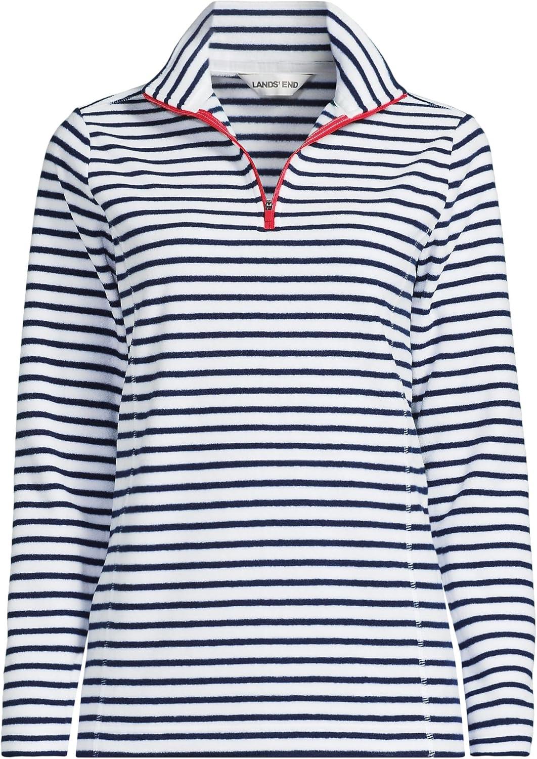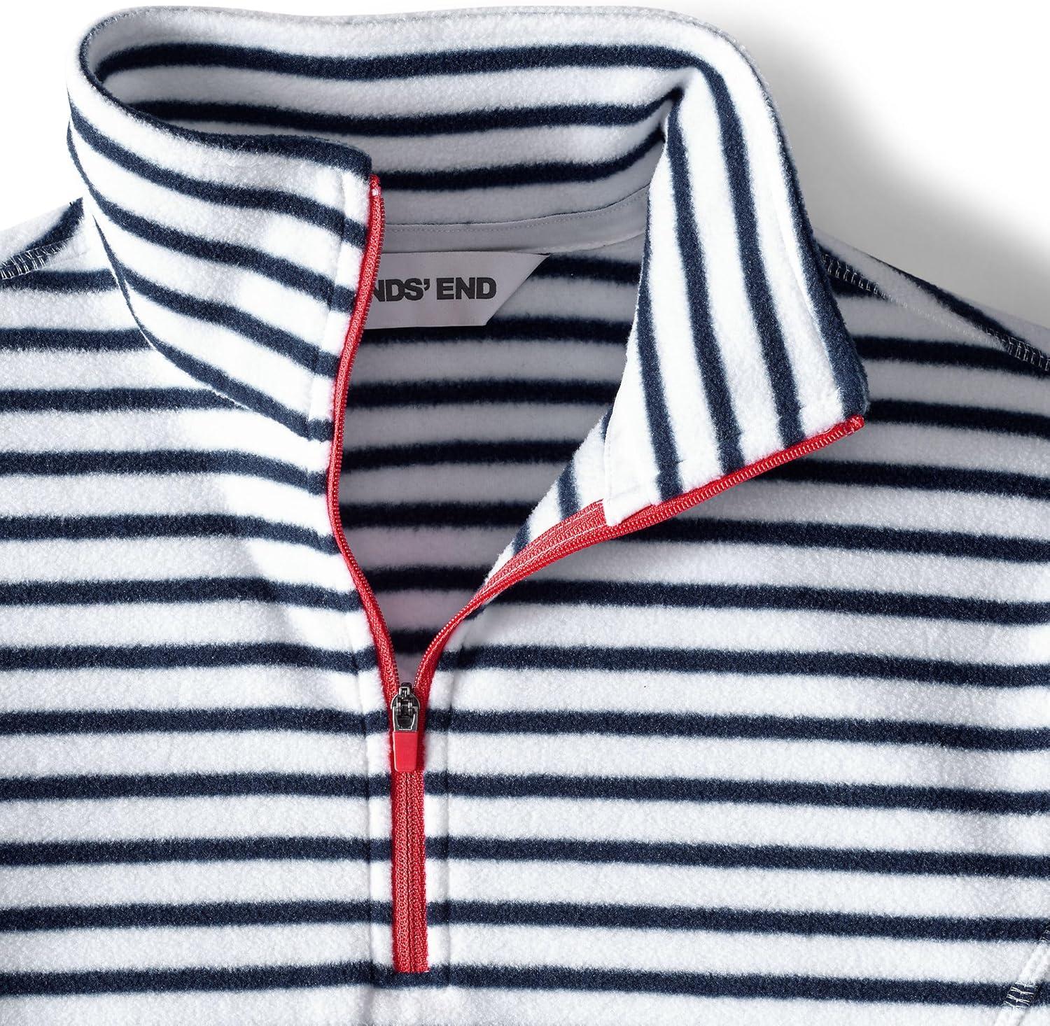 Lands’ End Anyweather Fleece Quarter Zip Pullover(Crisp White/Navy Stripe/Red)