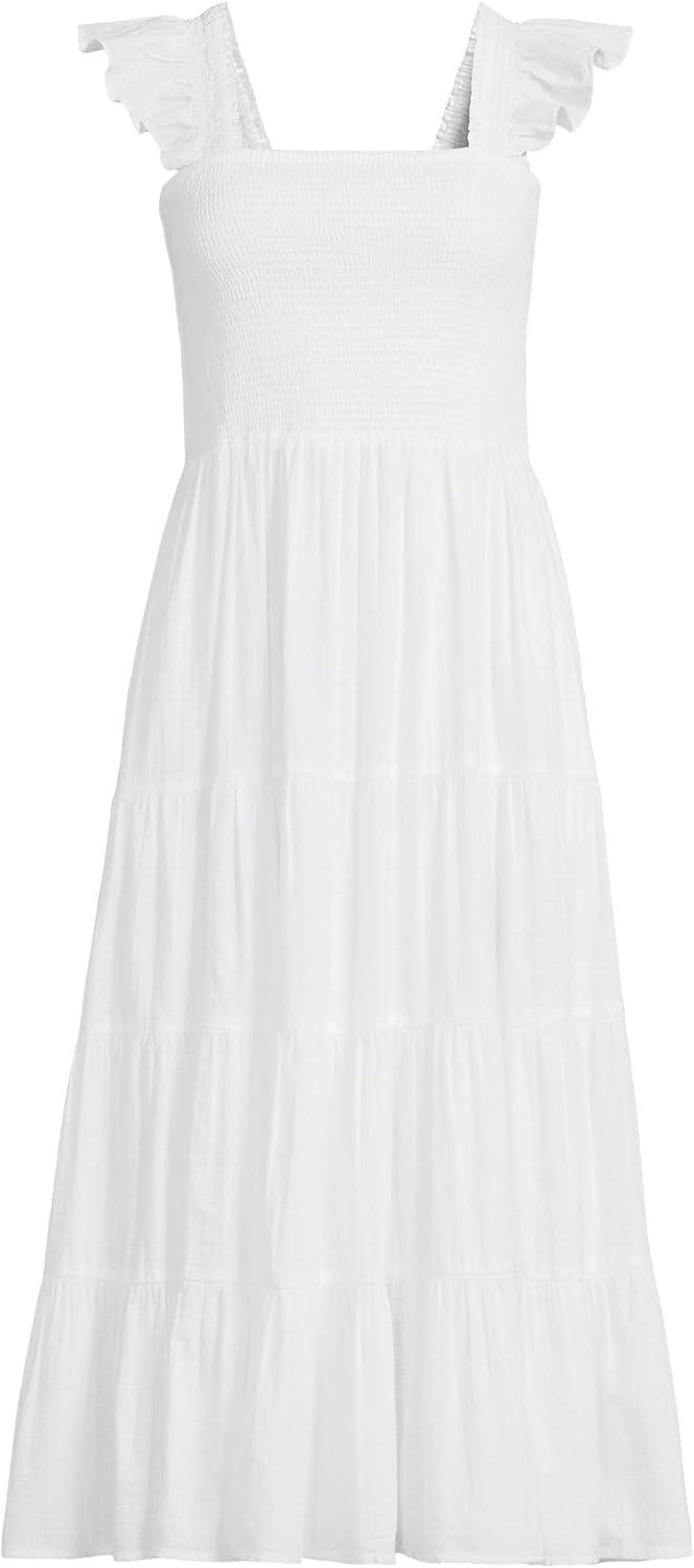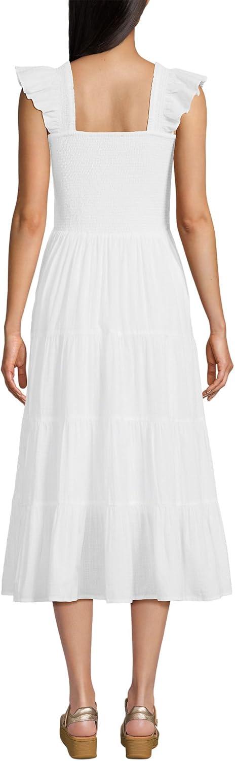 Lands’ End Women’s Chambray Smocked Dress with Ruffle Straps(White)