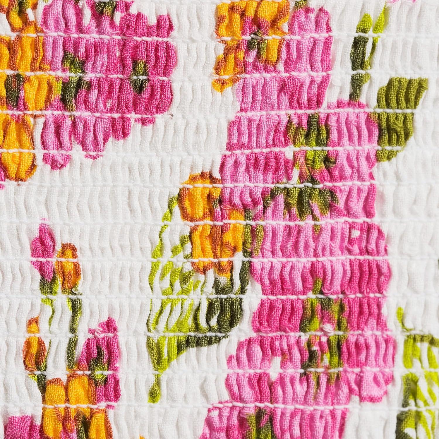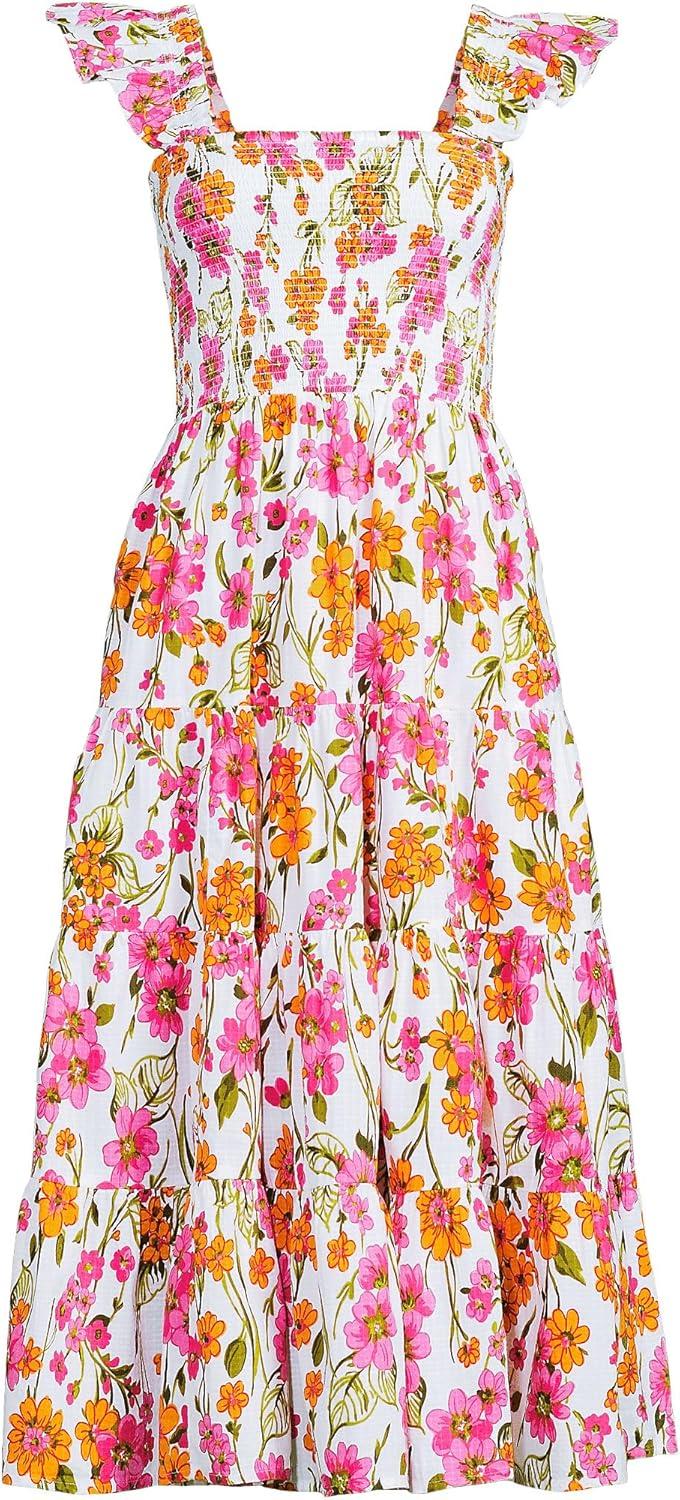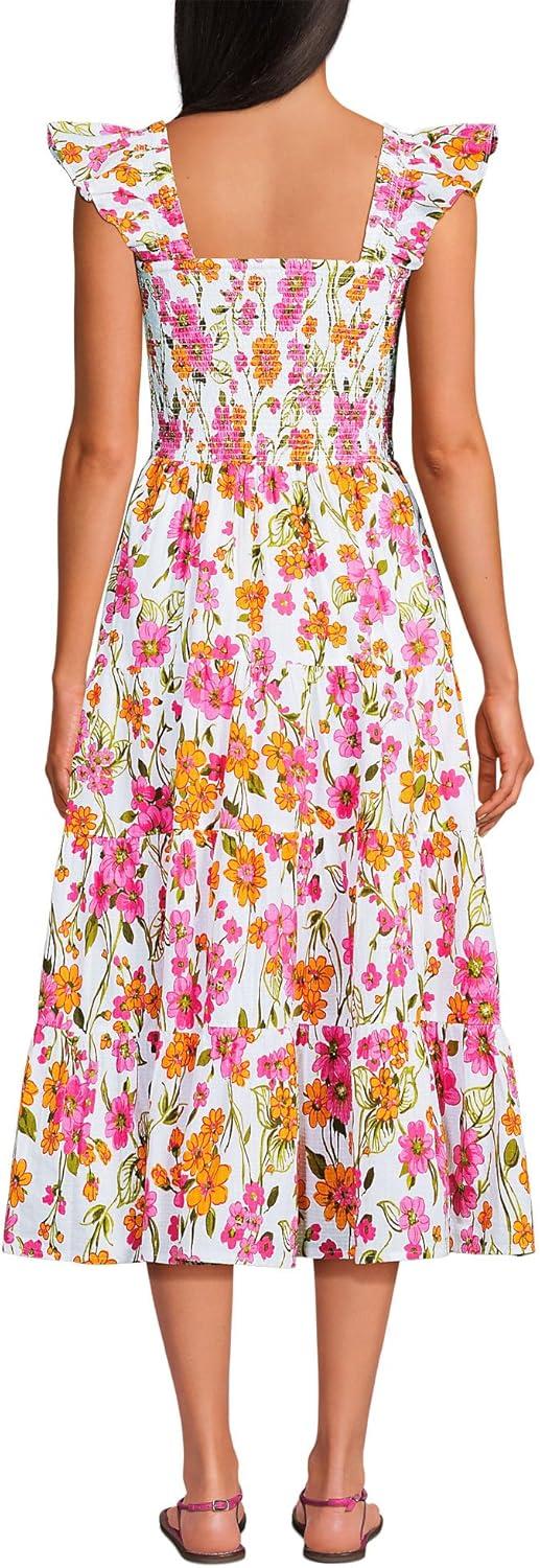 Lands’ End Women’s Chambray Smocked Dress with Ruffle Straps(White Climbing Floral)