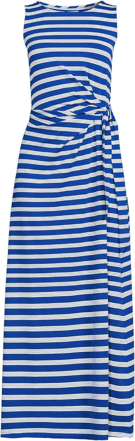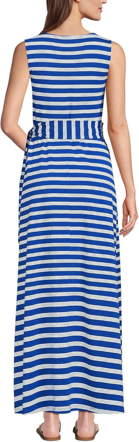Lands’ End Women’s Cotton Modal Sleeveless Tie Waist Maxi Dress(Sapphire Gem Blue Quad Stripe)
