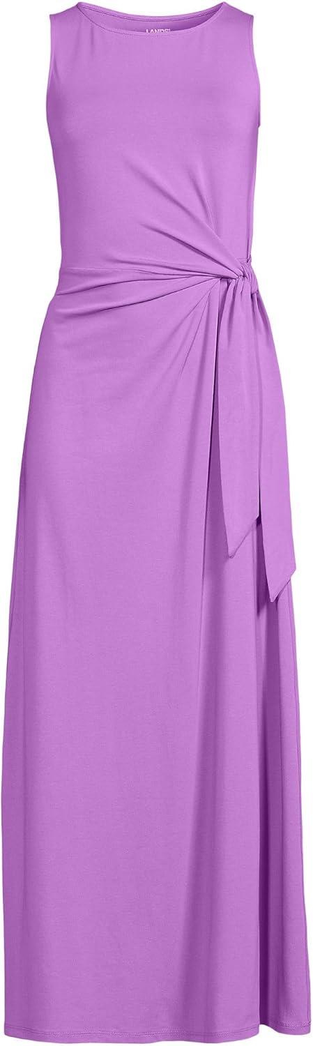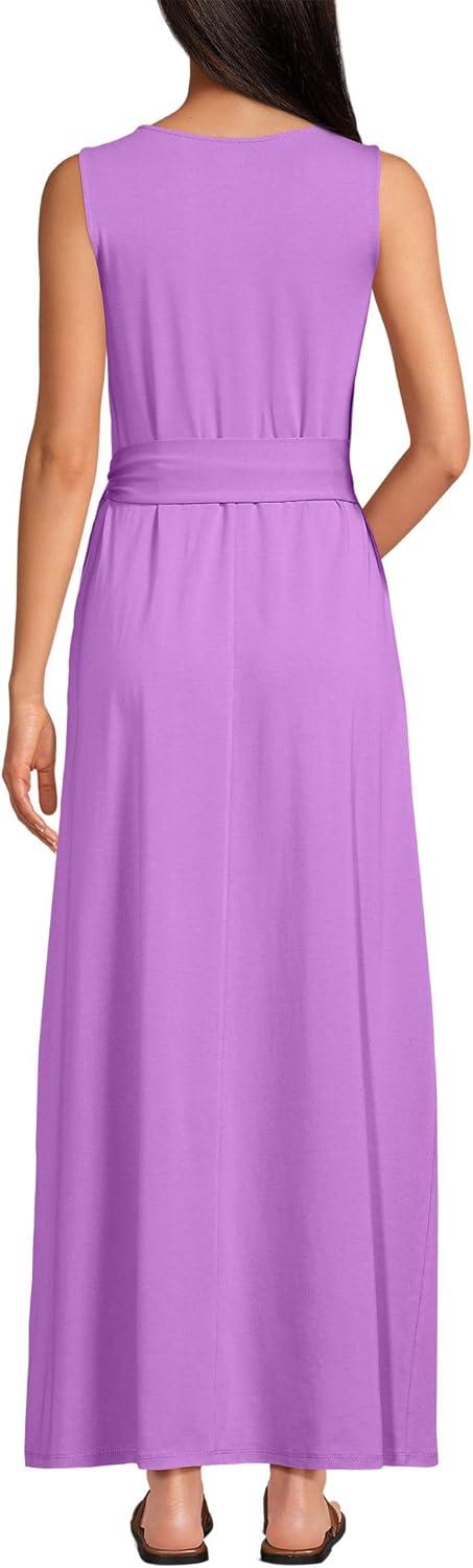Lands’ End Women’s Cotton Modal Sleeveless Tie Waist Maxi Dress(Soft Orchid)