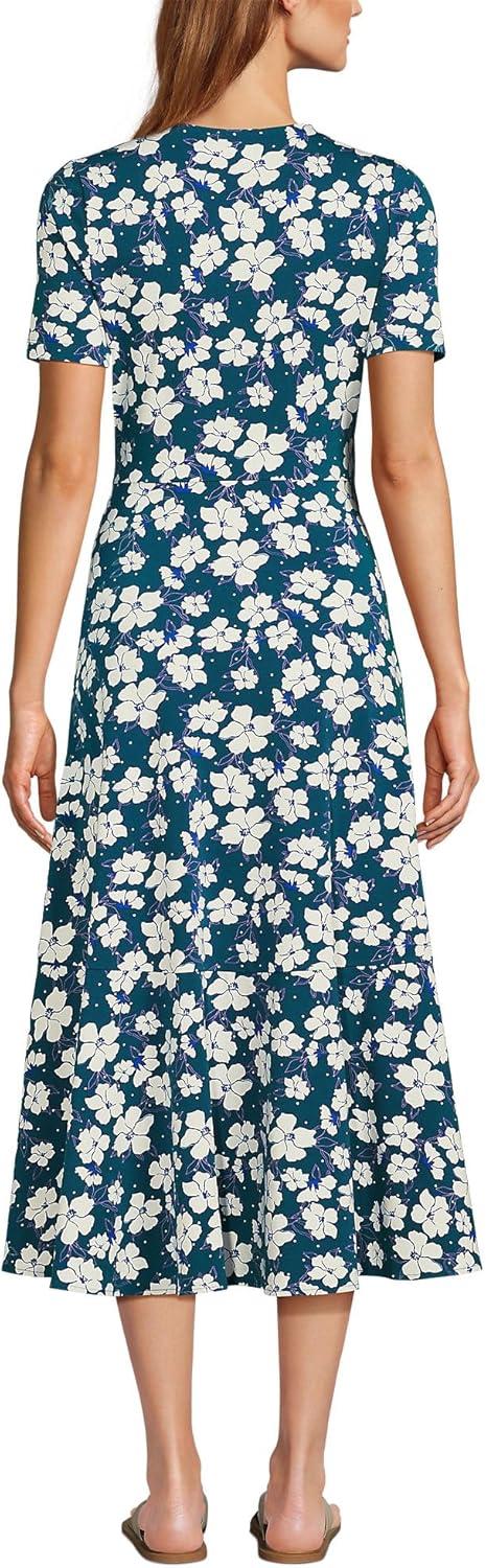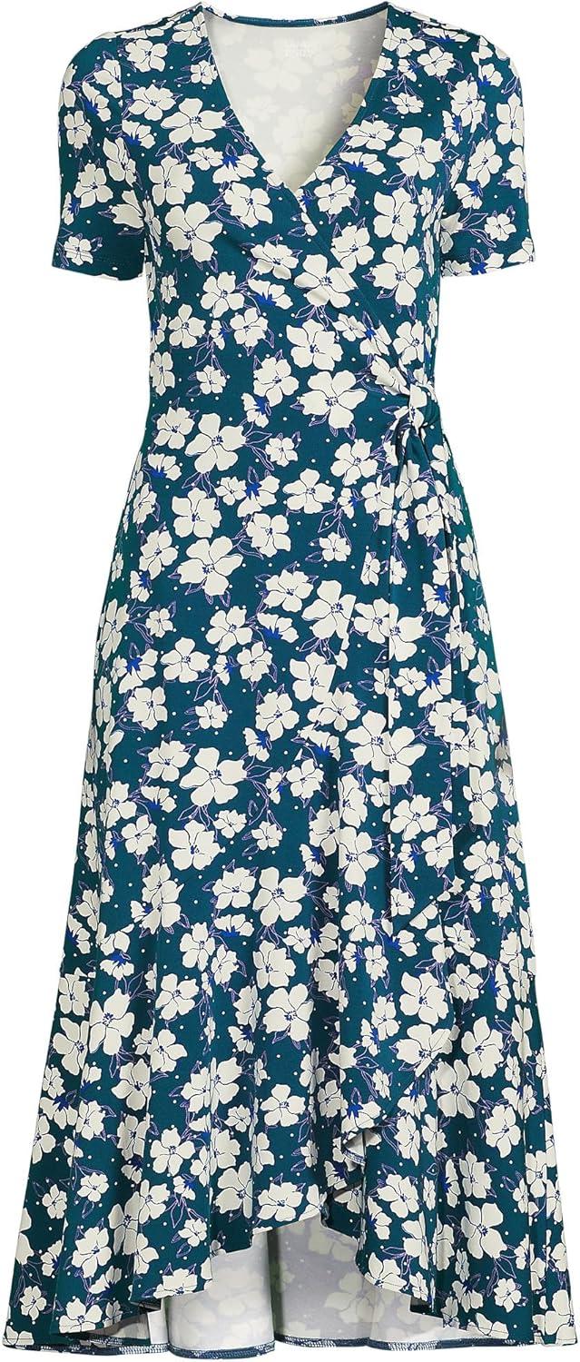 Lands’ End Women’s Cotton Modal Vneck Wrap Midi Dress(Baltic Teal Pansy Floral)