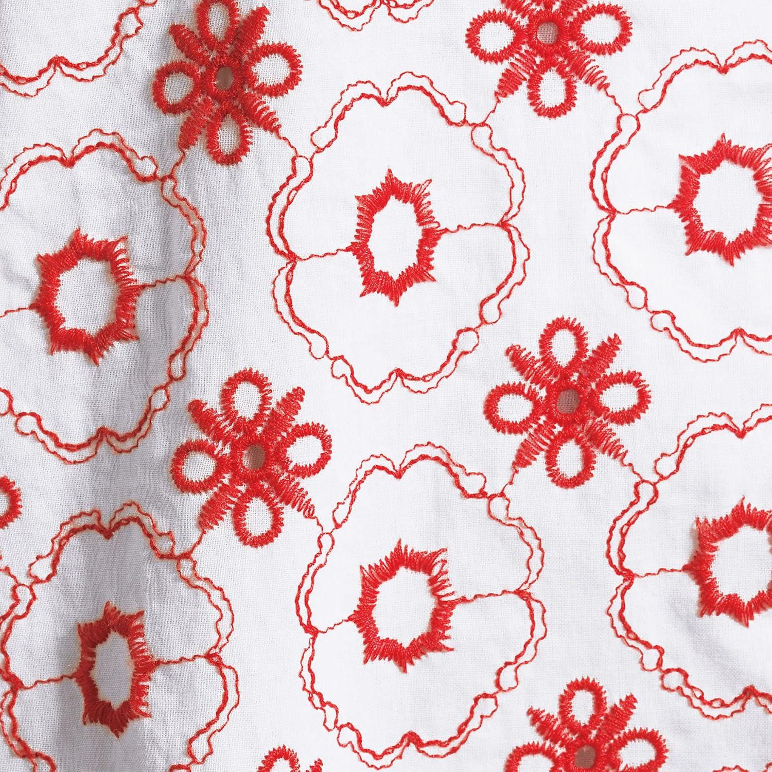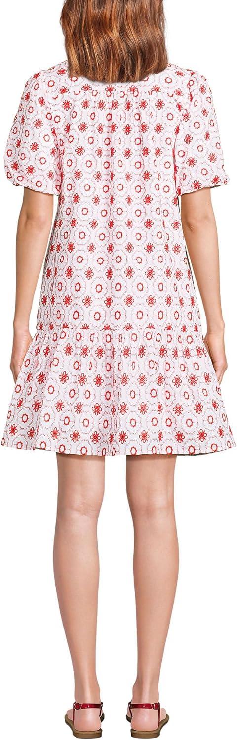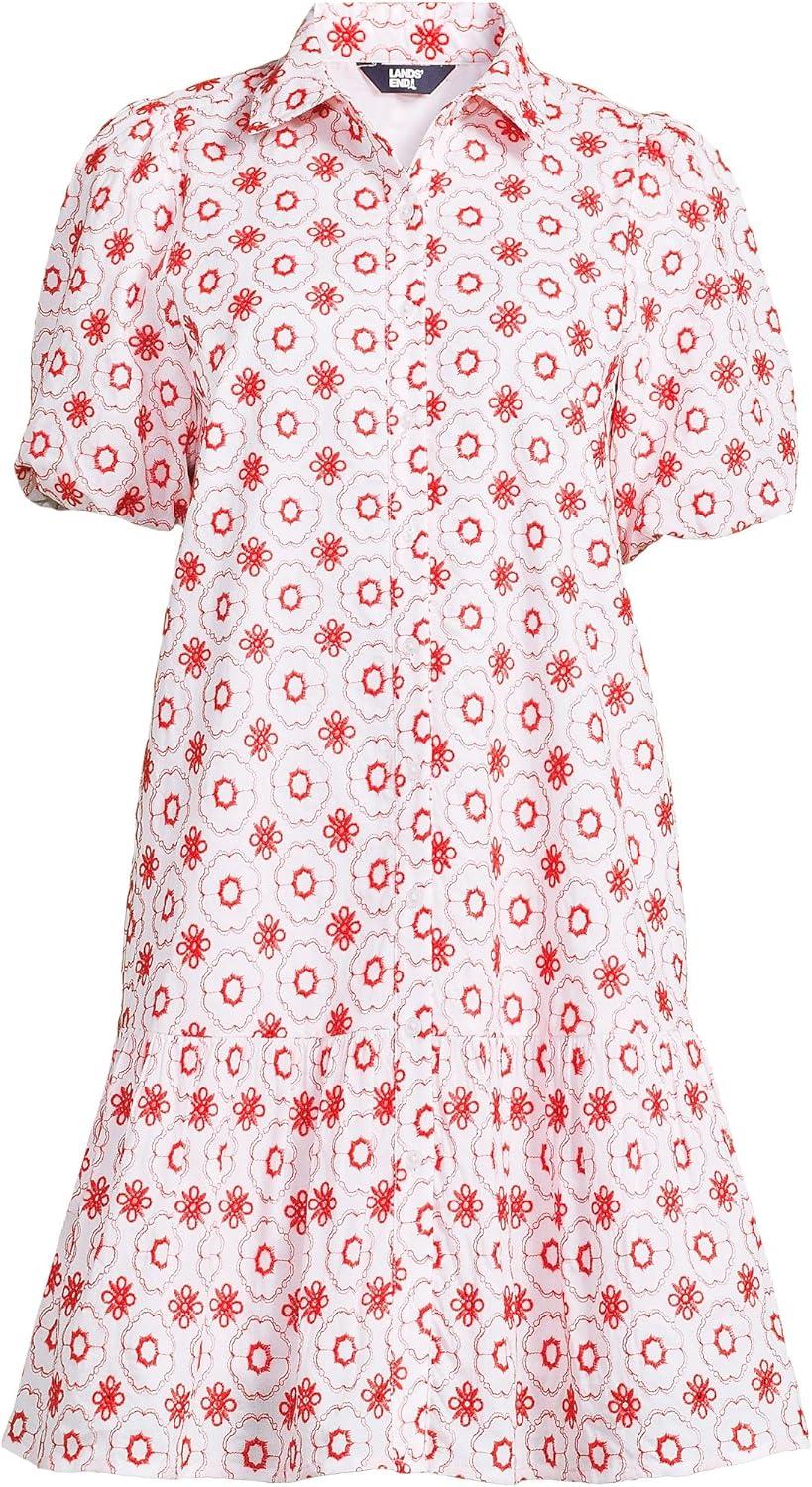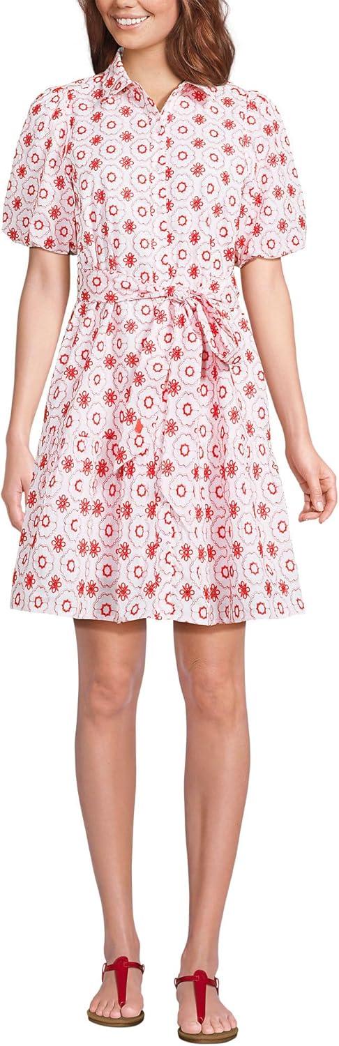 Lands’ End Women’s Elbow Sleeve Eyelet Knee Length Shirt Dress(White/Poppy Mosaic Eyelet)