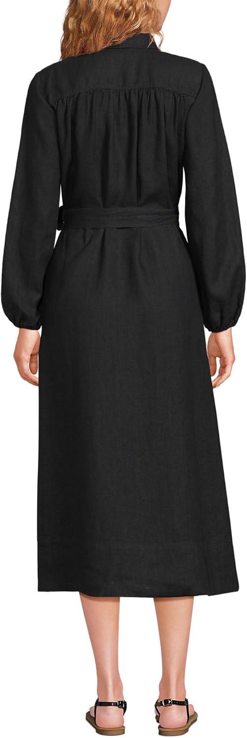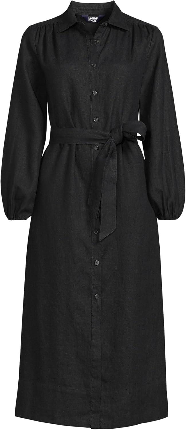 Lands’ End Women’s Linen Long Sleeve Midi Shirt Dress(Black)