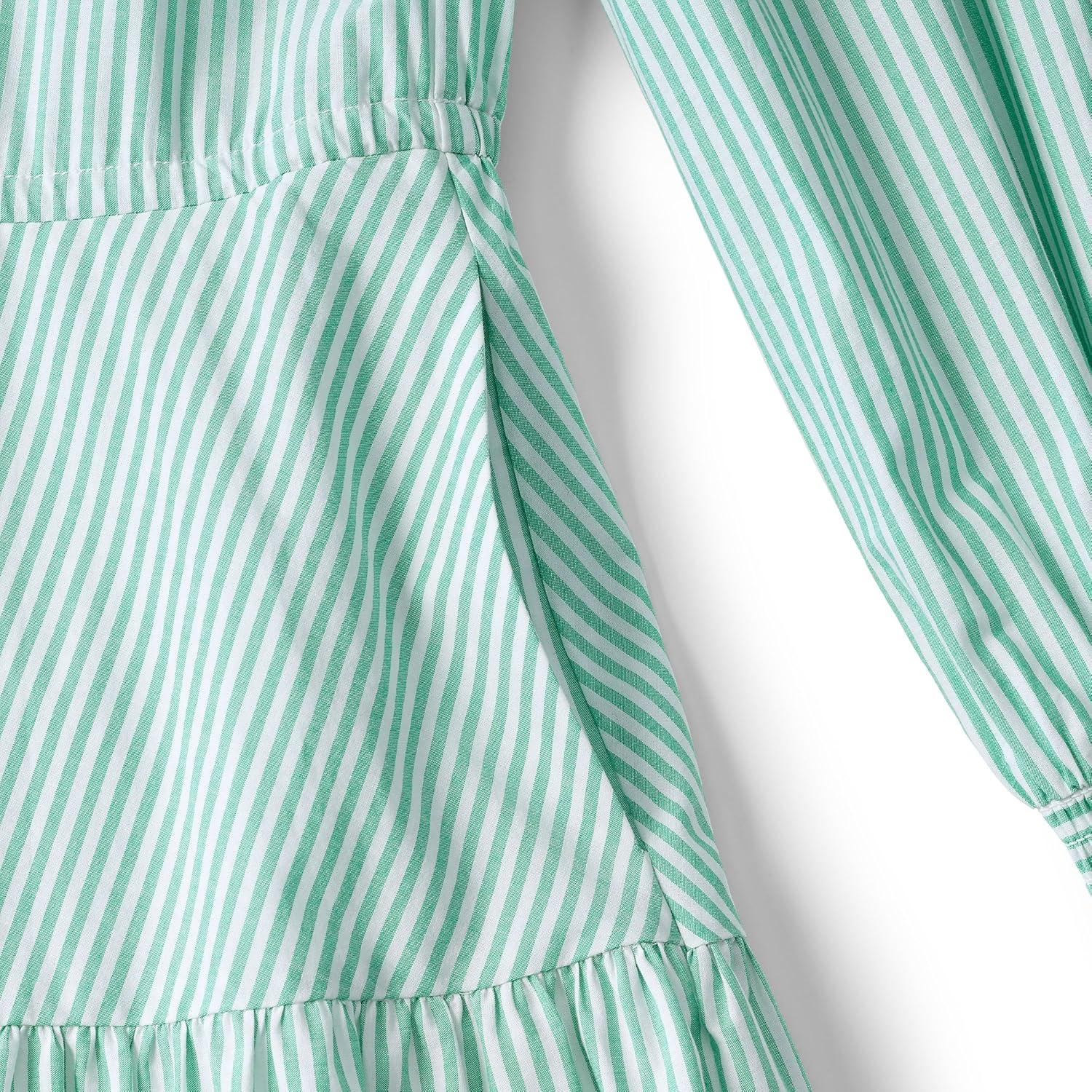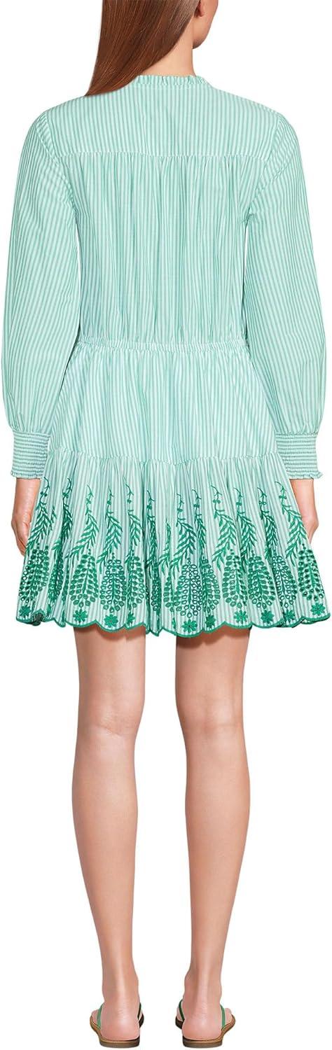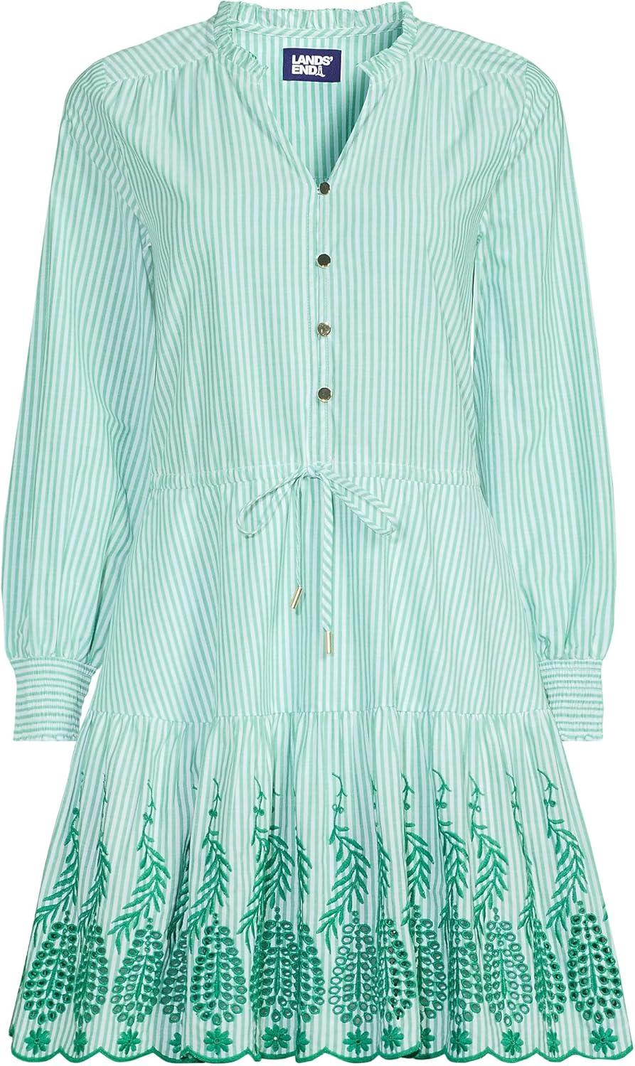 Lands’ End Women’s Long Sleeve Eyelet Mini Popover Dress(Vibrant Clover Stripe Eyelet)