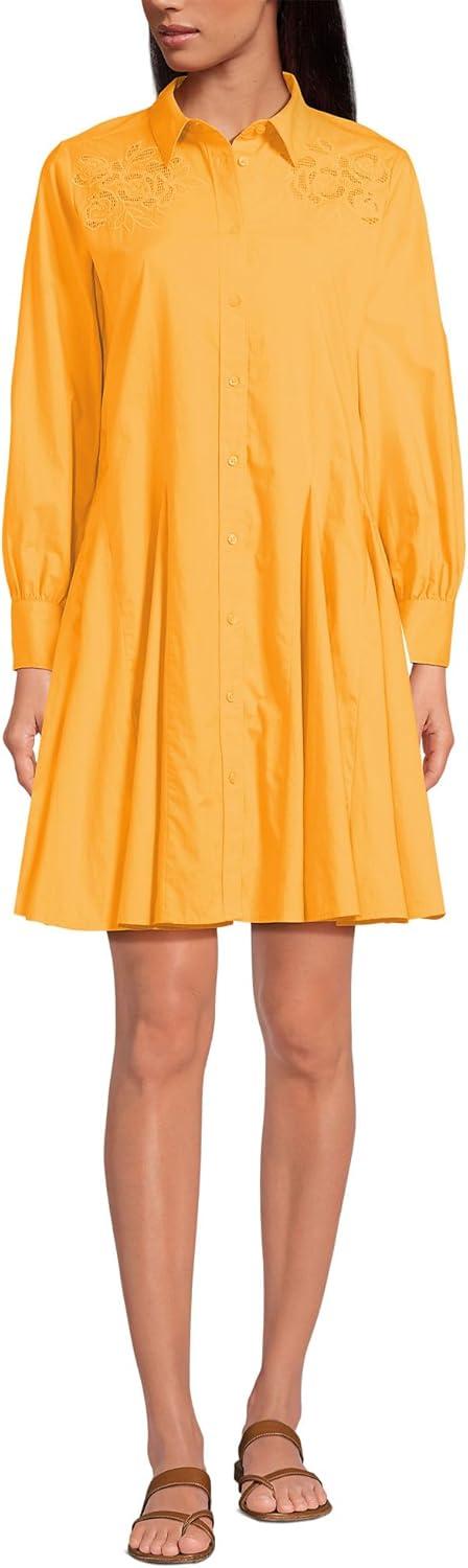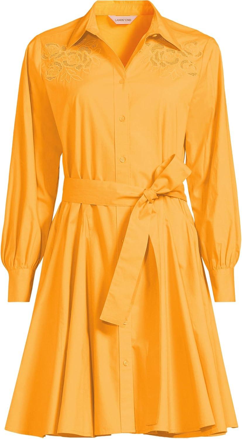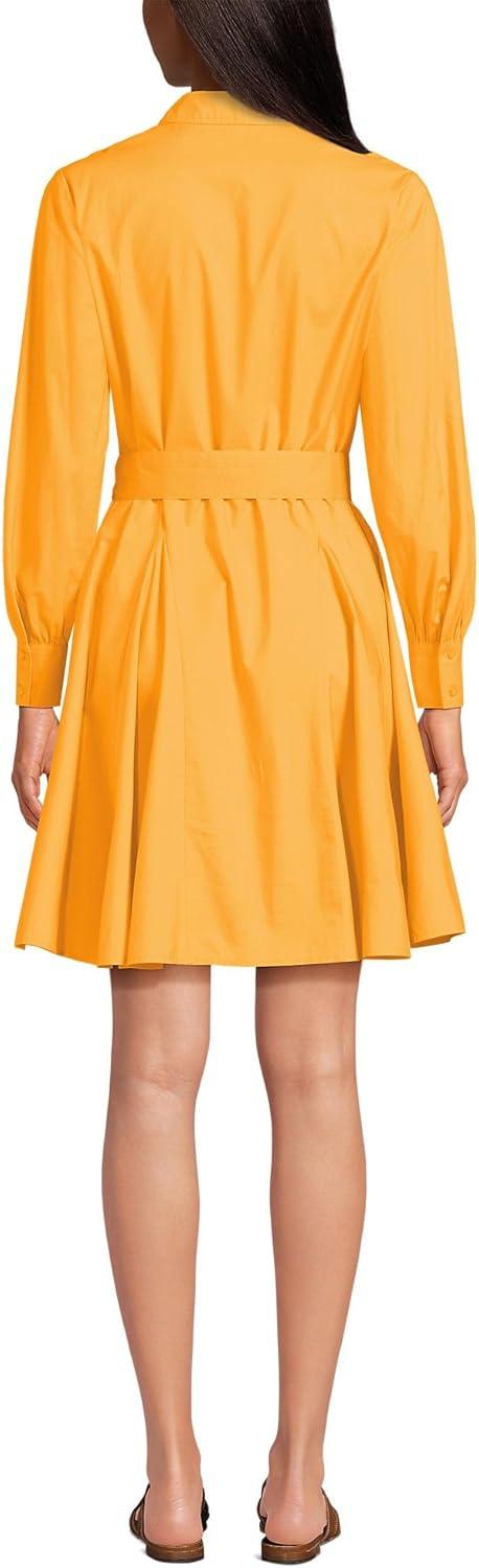 Lands’ End Women’s Poplin Button Front Dress with Godets(Sweet Mango)