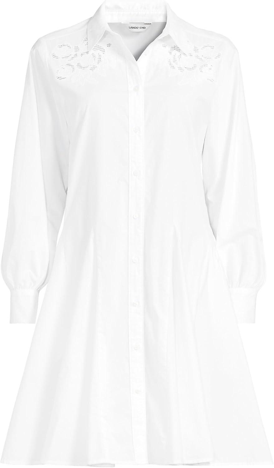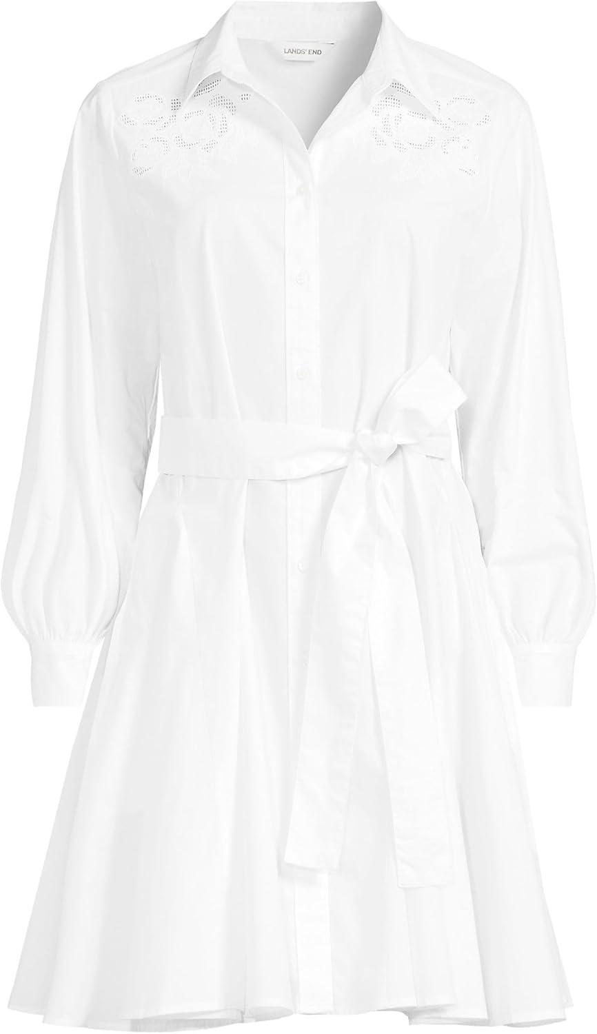 Lands’ End Women’s Long Sleeve Eyelet Mini Popover Dress(White Eyelet)