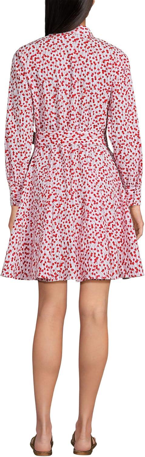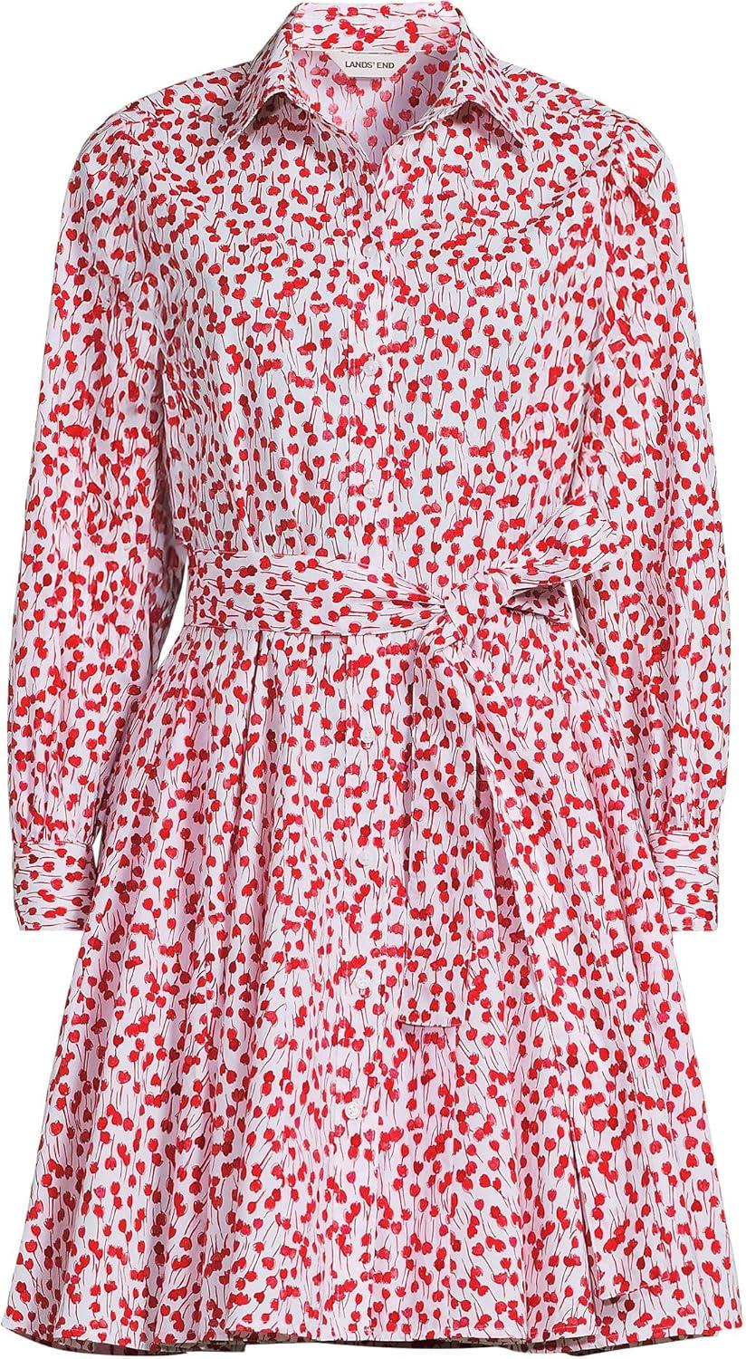Lands’ End Women’s Poplin Button Front Dress with Godets(White/Coral Red Painted Posies)