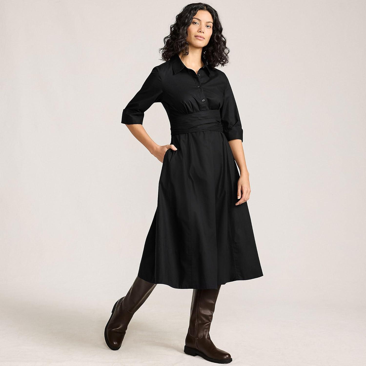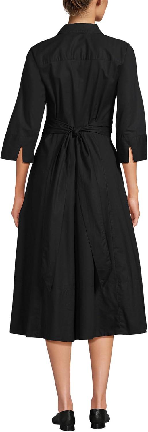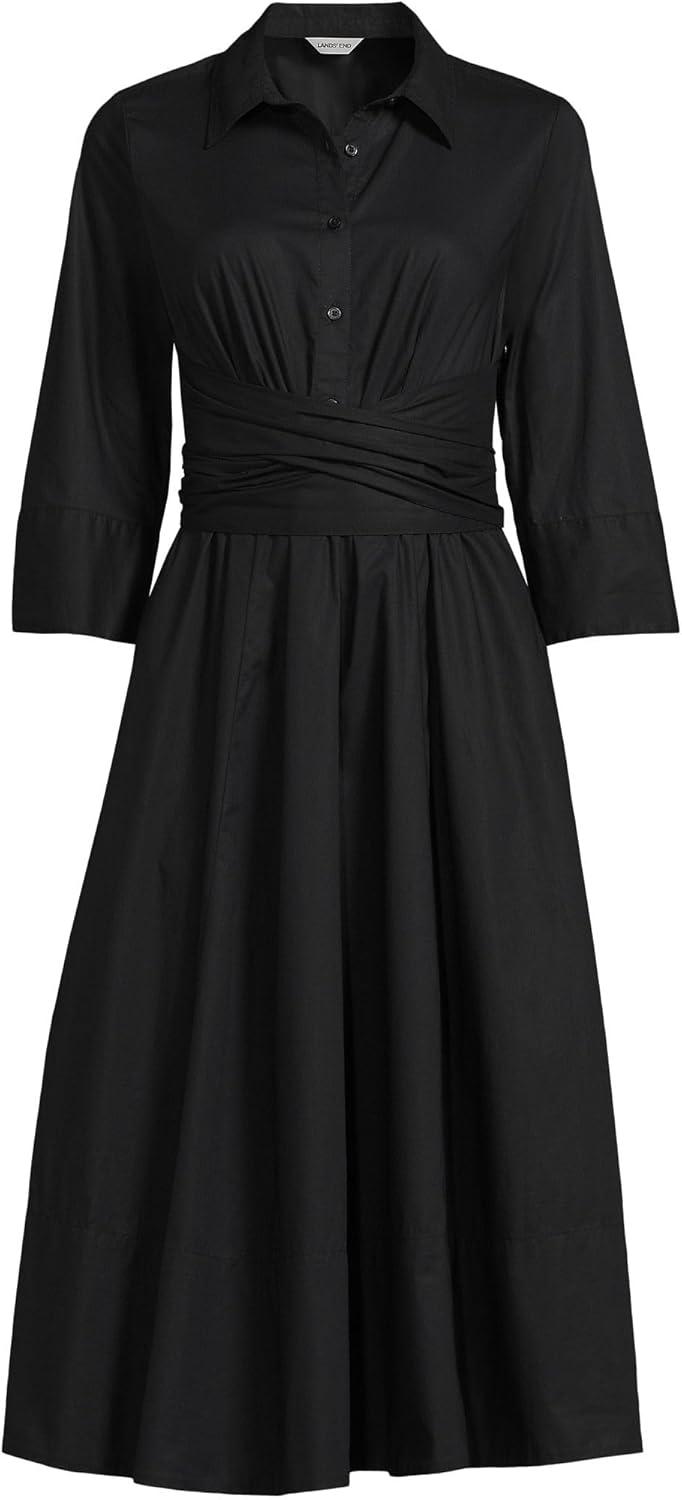 Lands’ End Women’s Poplin Midi Wrap Front Dress(Black)