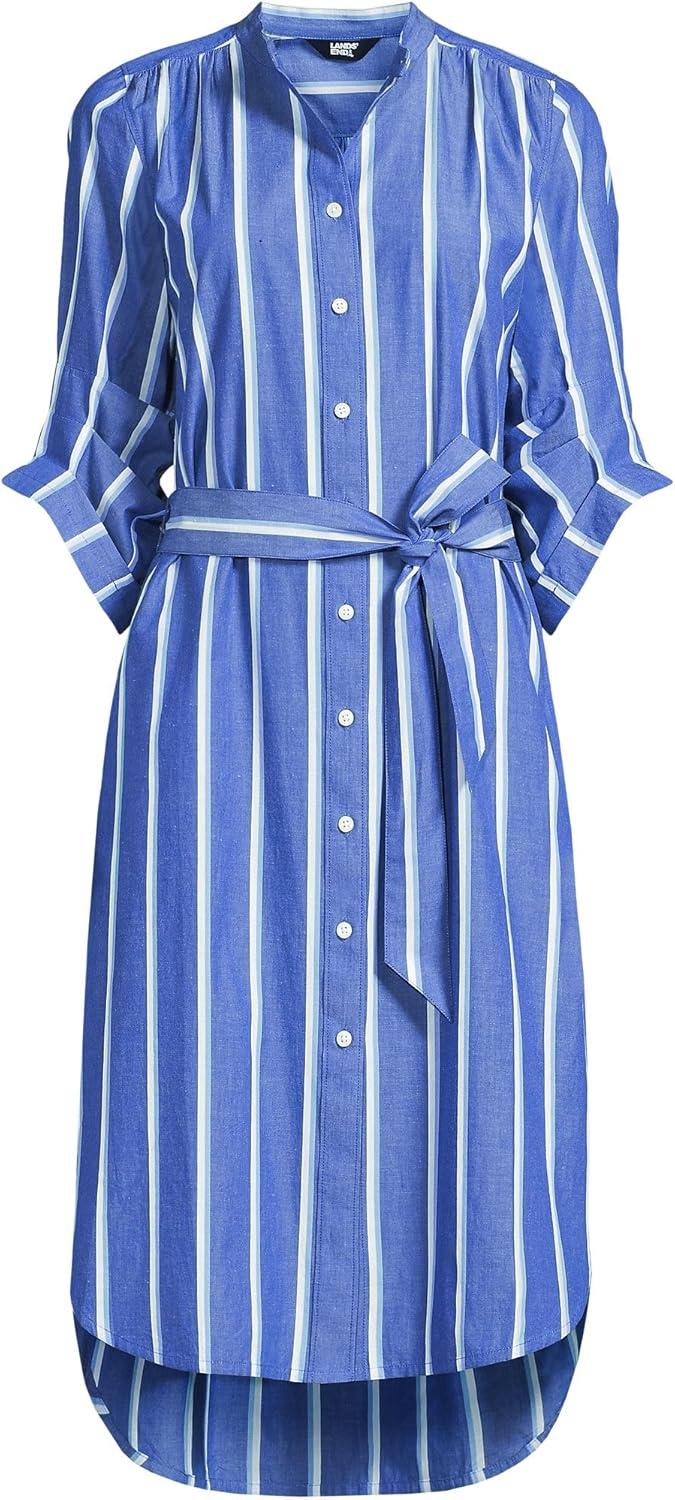 Lands’ End Women’s Linen Long Sleeve Midi Shirt Dress(Toasted Rye Stripe)
