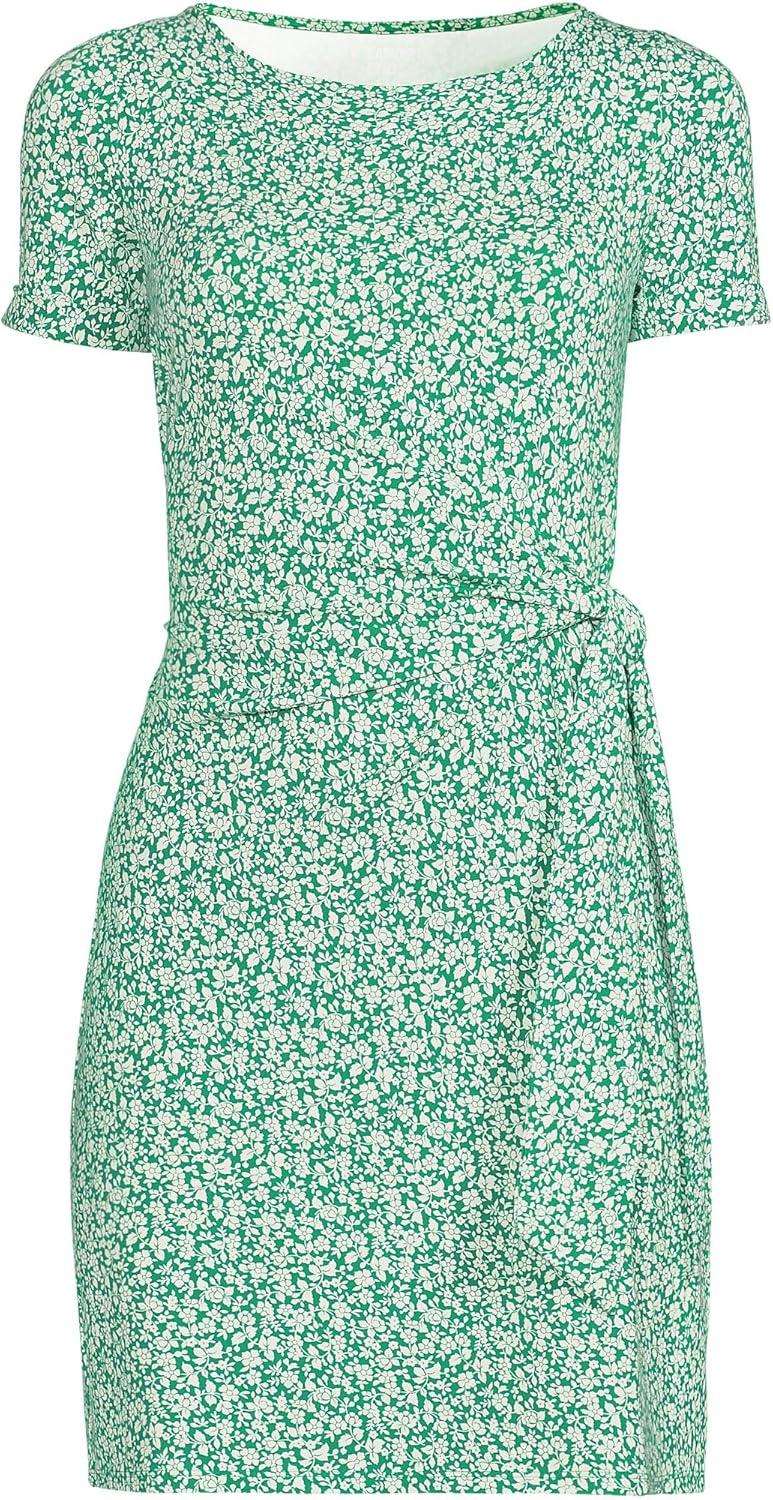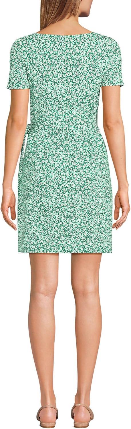 Lands’ End Women’s Short Sleeve Cotton Modal Wrap Mini Dress(Vibrant Clover Blossoms)