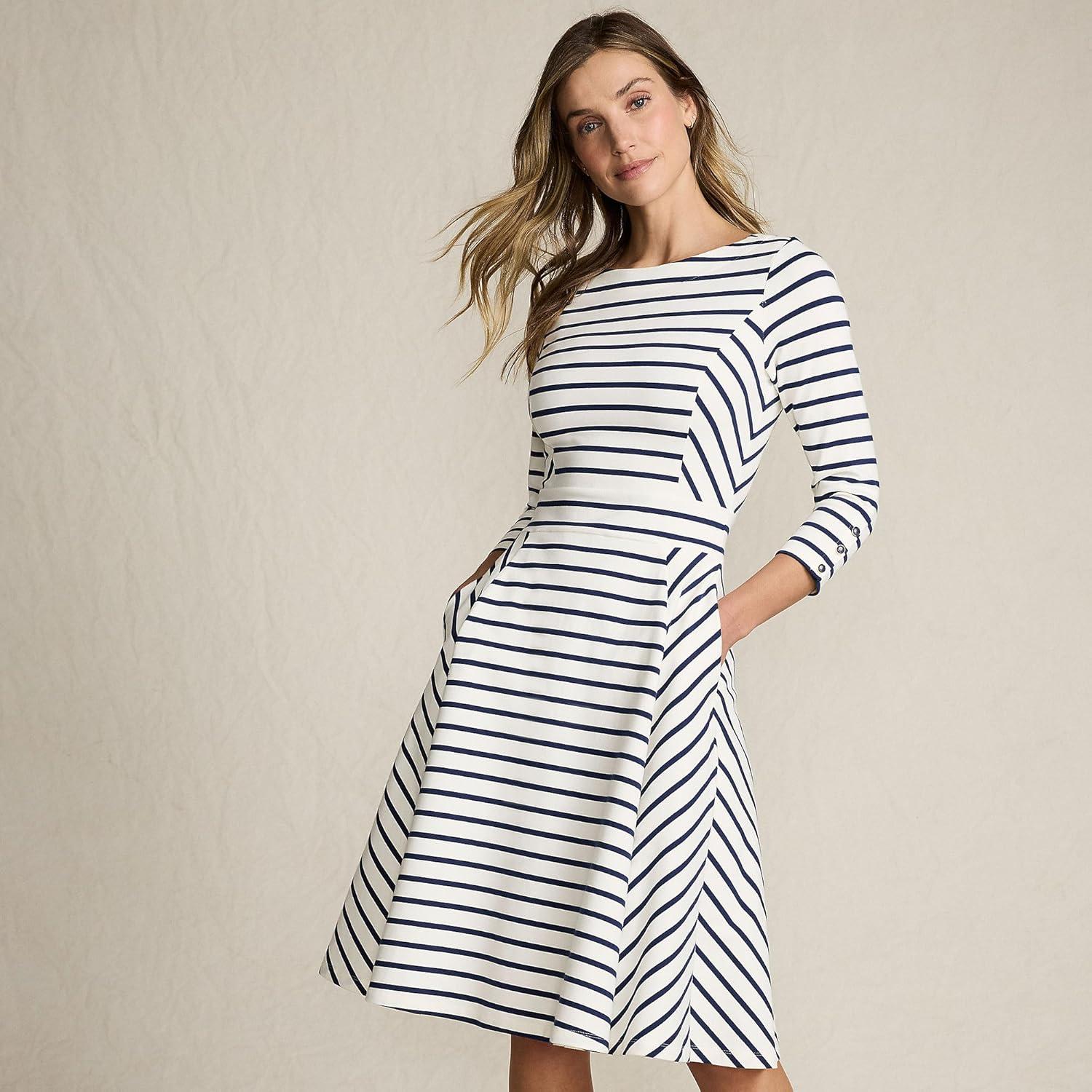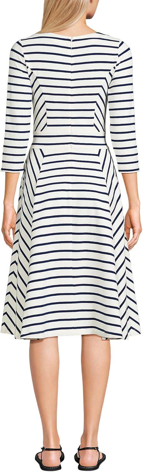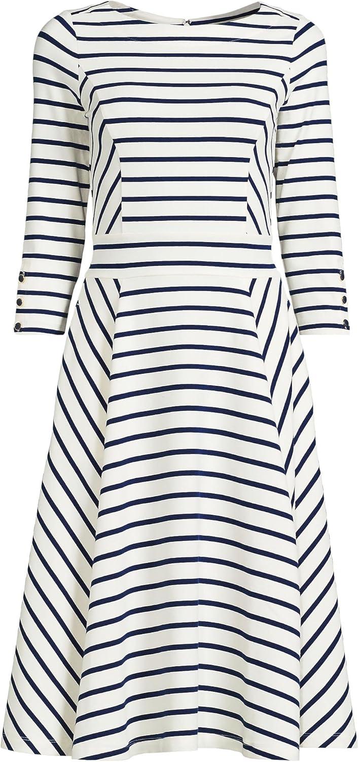 Lands’ End Women’s Starfish 3/4 Sleeve Dress(Ivory/Deep Sea Breton Stripe)
