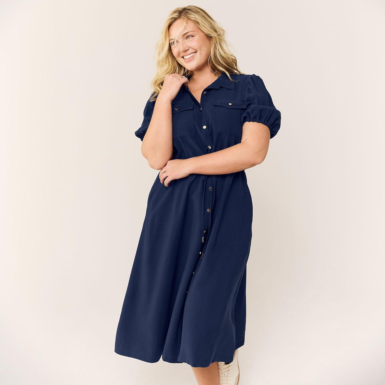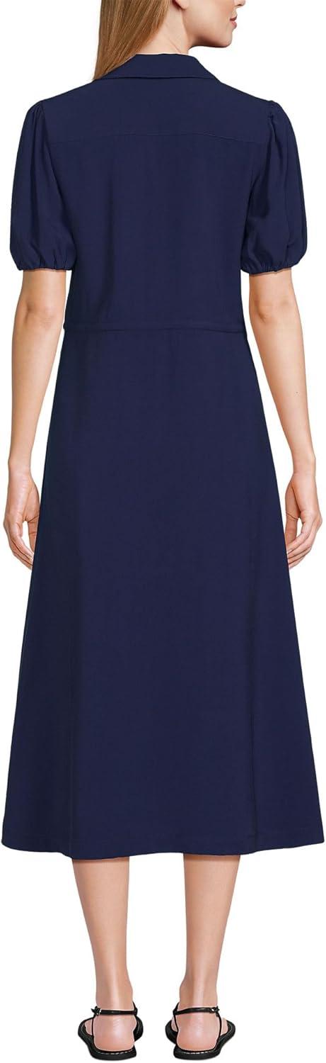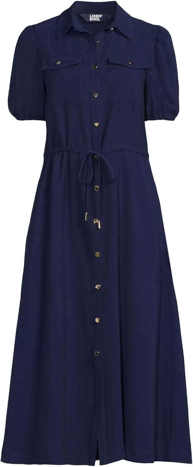 Lands’ End Women’s Twill Button Front Fluid Short Sleeve Dress(Deep Sea Navy)