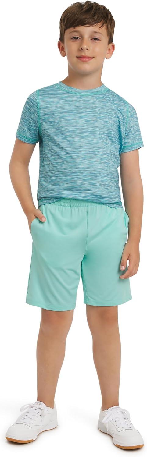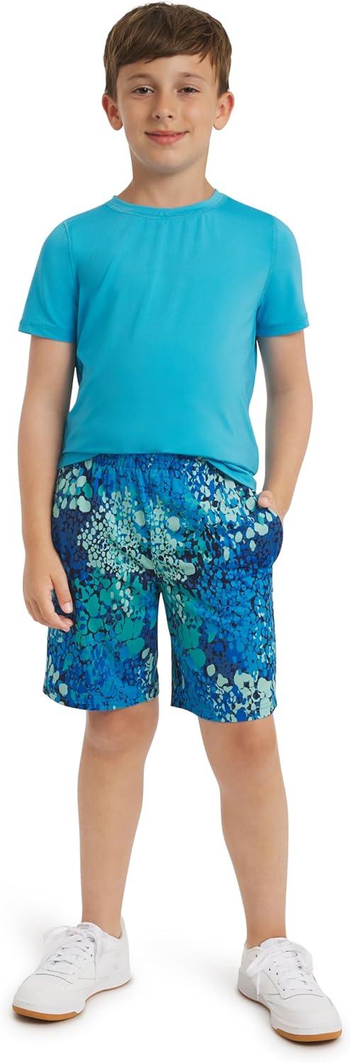 Lands’ End Boys’ Active Adventure UPF 50 Short Sleeve T-Shirt & Short Set (S-XL)(Aqua Ice)