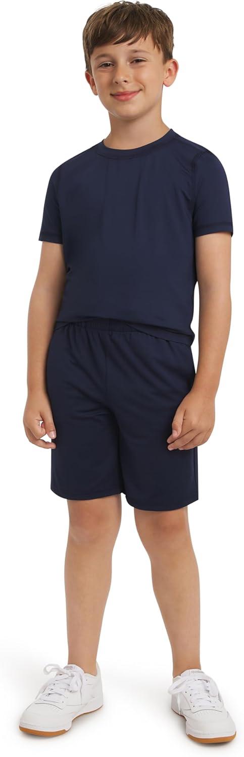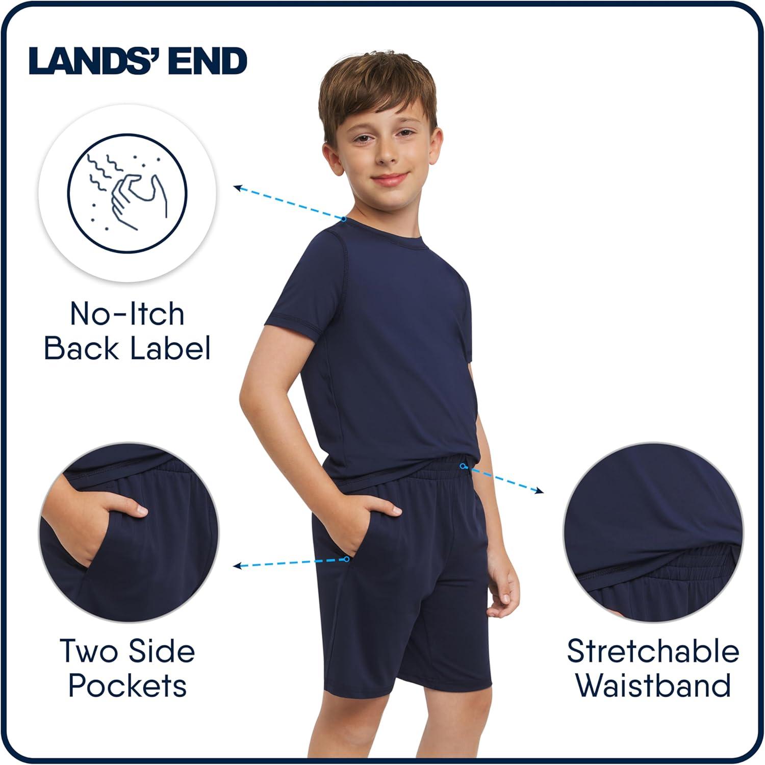 Lands’ End Boys’ Active Adventure UPF 50 Short Sleeve T-Shirt & Short Set (S-XL)(Deep Sea Navy)
