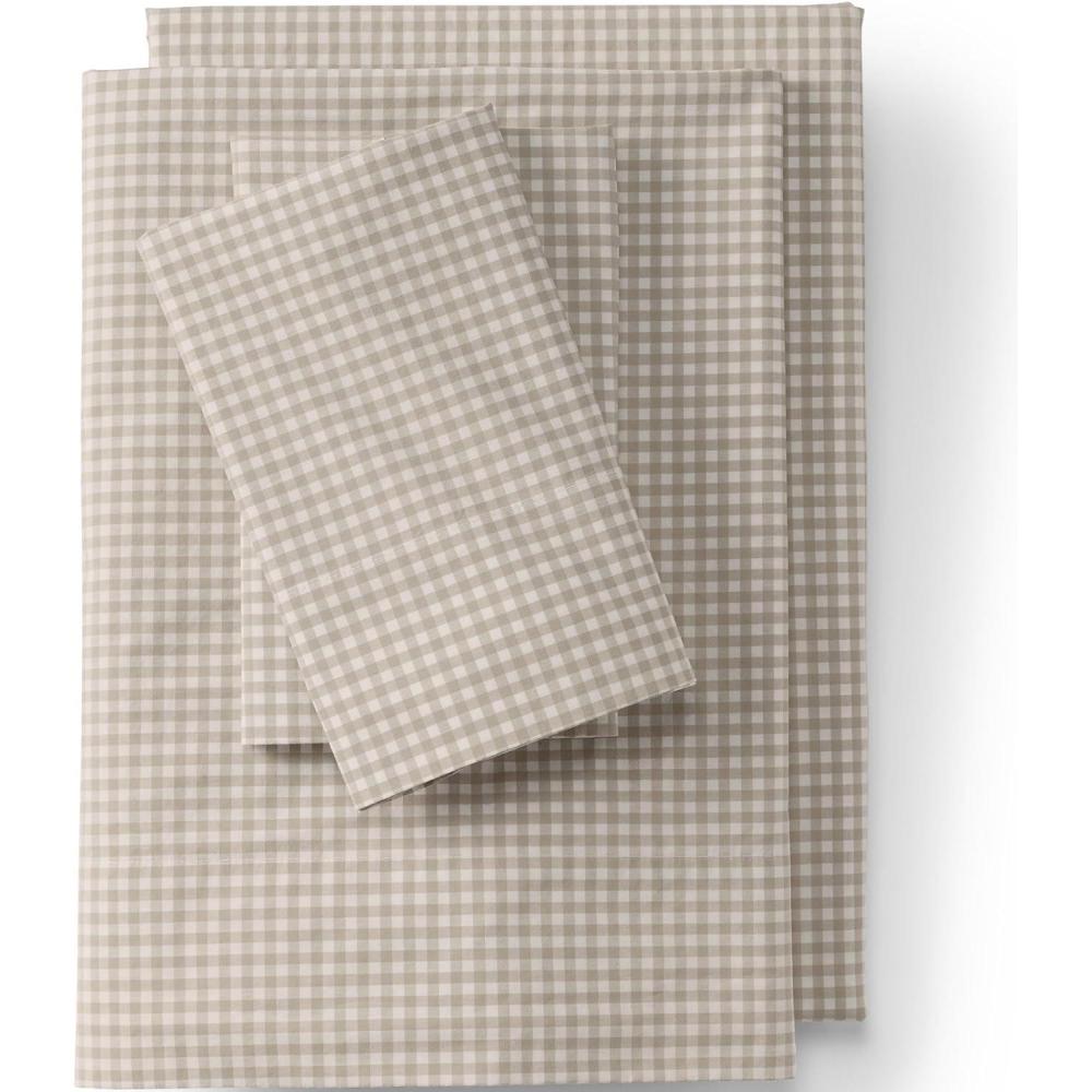 Lands’ End 300 Percale Yarn Dye Sheets Khaki Gingham Full(Khaki Gingham)
