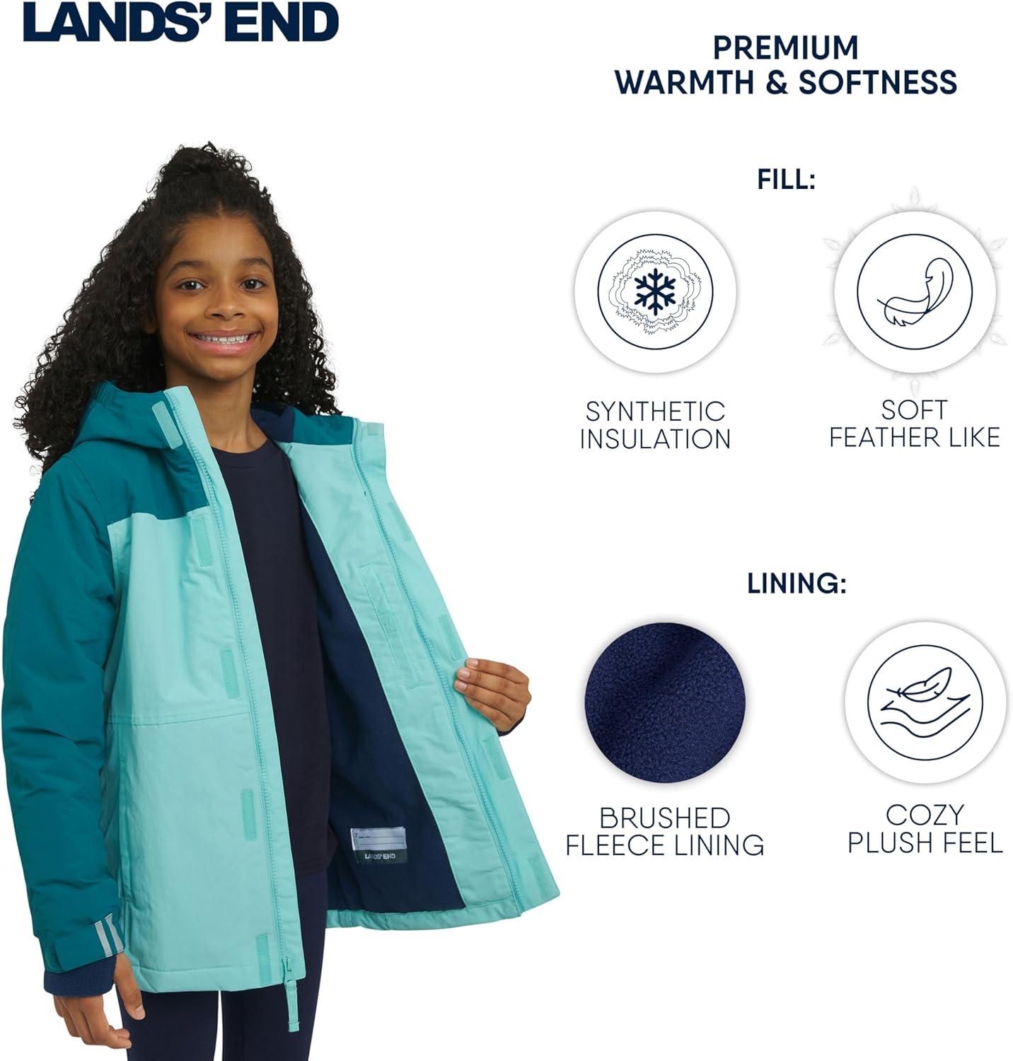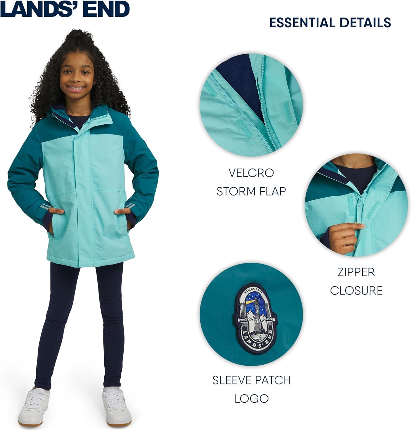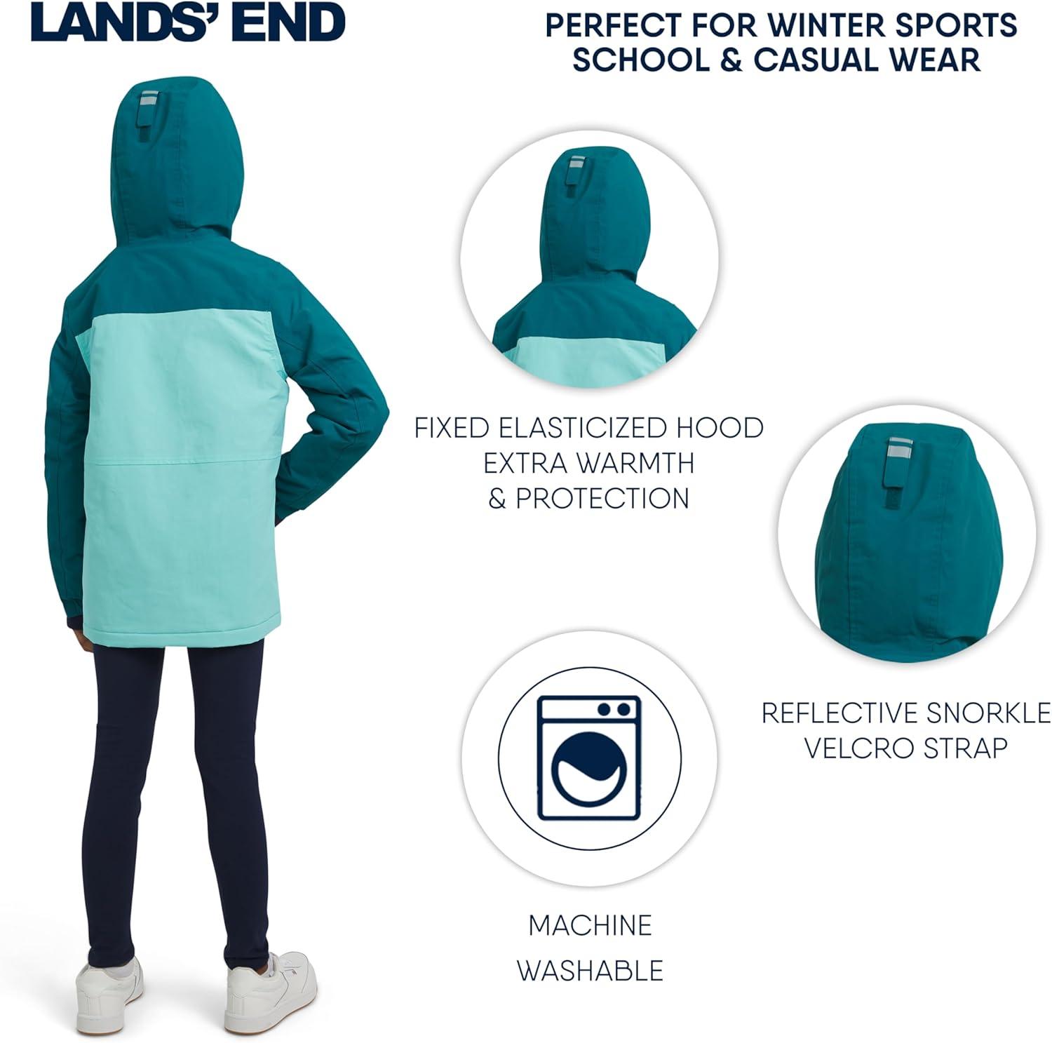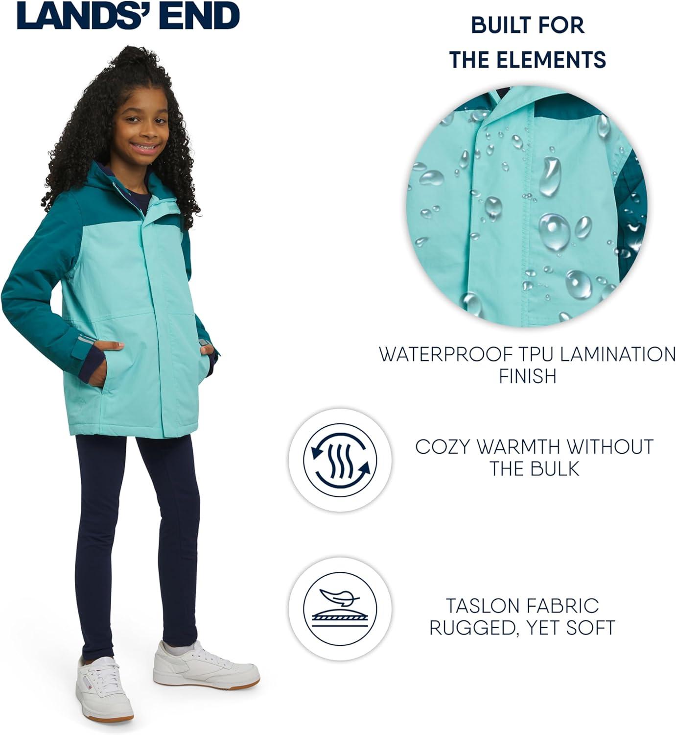 Lands’ End Girls’ Squall Waterproof Fleece Lined Insulated Jacket(Aqua)