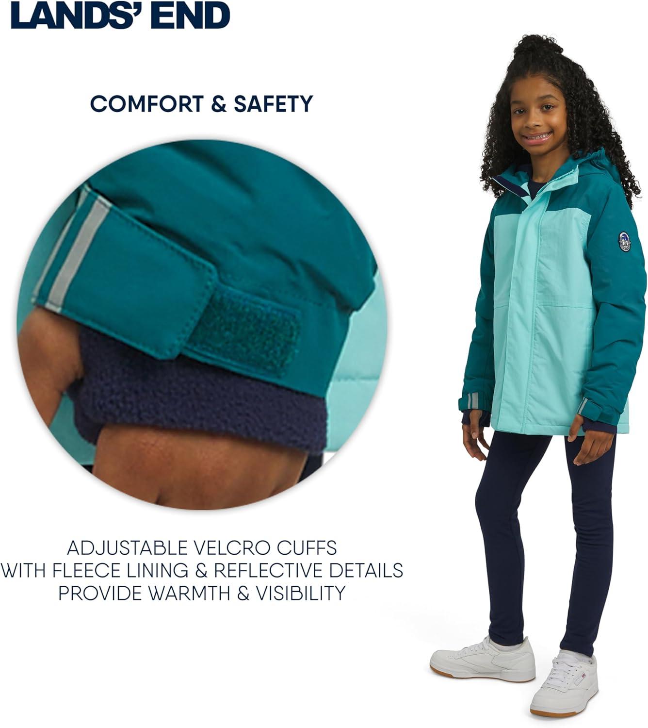 A legacy of timeless quality and dependable design, Lands' End is committed to crafting comfortable, durable clothing for everyday life. Our Squall Midweight Waterproof Fleece Lined Insulated Jacket embodies that promise, making it a jacket for all their activities. This durable and rugged Taslon fabric jacket is built to handle everything from winter sports and recess to the school run and everyday casual wear. It pairs easily with jeans, leggings, and snow pants for a complete cold-weather look. Experience a cozy and soft feel with dependable warmth. The soft, feather-like synthetic insulation provides consistent warmth, while a plush brushed fleece lining adds an extra layer of coziness. The result is cozy warmth without the bulk, ensuring comfort when the temperature drops. This jacket is built for the elements with a waterproof TPU lamination finish that effectively seals out wind and rain. A full-zip closure with a velcro storm flap and a fixed elasticized hood help to create a secure barrier to keep cold drafts out. This jacket is also a testament to smart design and quality construction. It features a velcro-closure pocket inside and two side welt pockets with a velcro closure, so belongings stay secure. The adjustable cuffs have a soft fleece interior, and a reflective detail provides added visibility. It is also machine washable for easy care, making it a reliable and convenient choice for parents and kids alike.