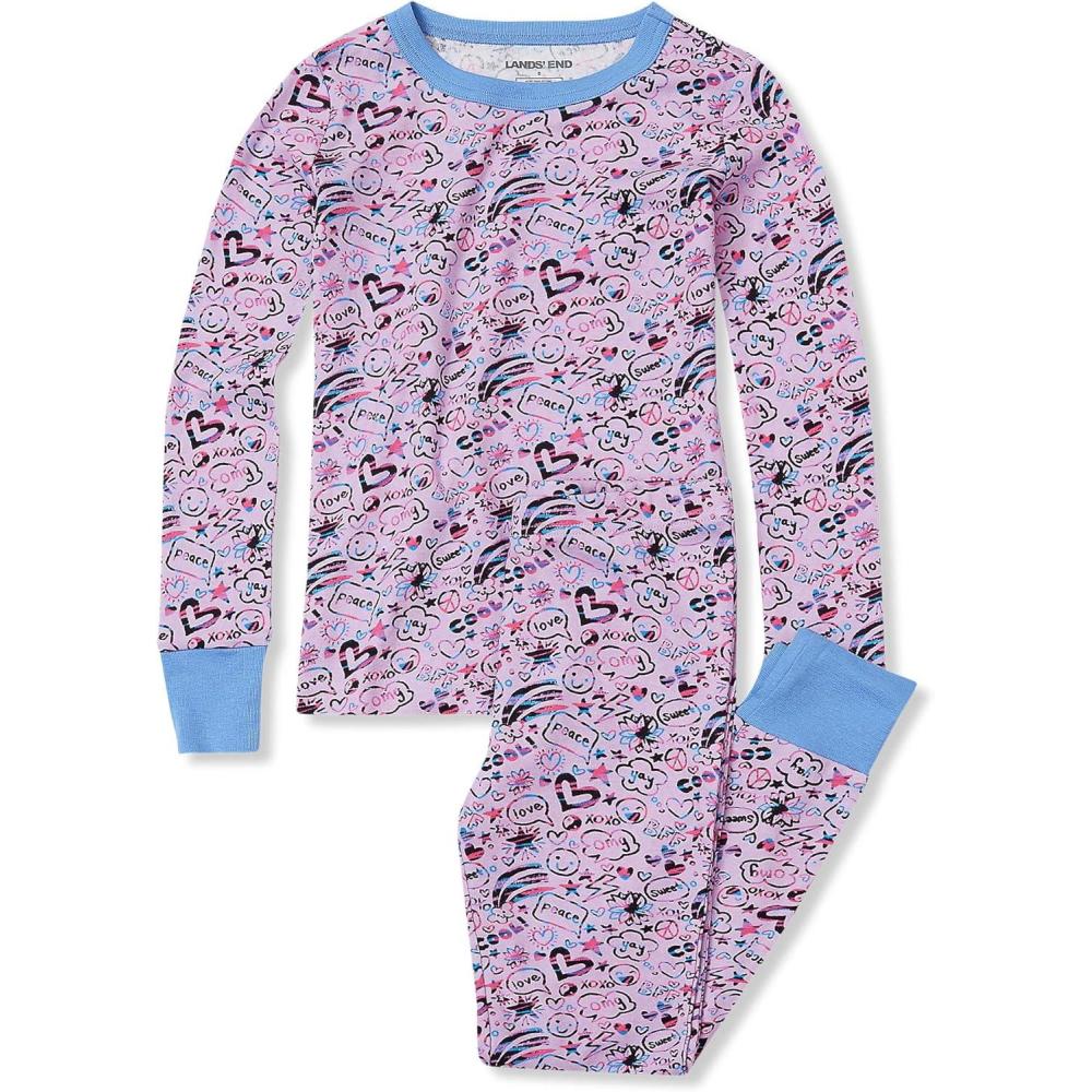Lands’ End Kids Pattern Snug Fit Pajama Set(Doodle on Light Purple)