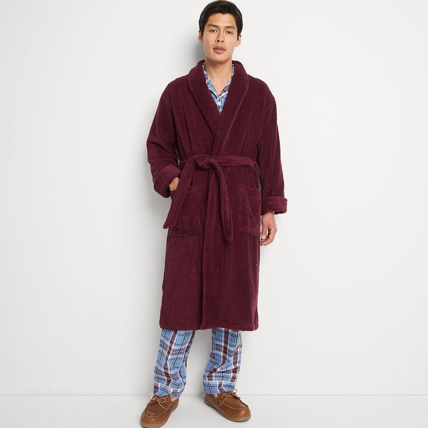 Lands’ End Men’s Full-Length Turkish Cotton Terry Bathrobe – 55″ Length | Plush, Absorbent, 2 Pockets, Spa Comfort(Rich Burgundy)