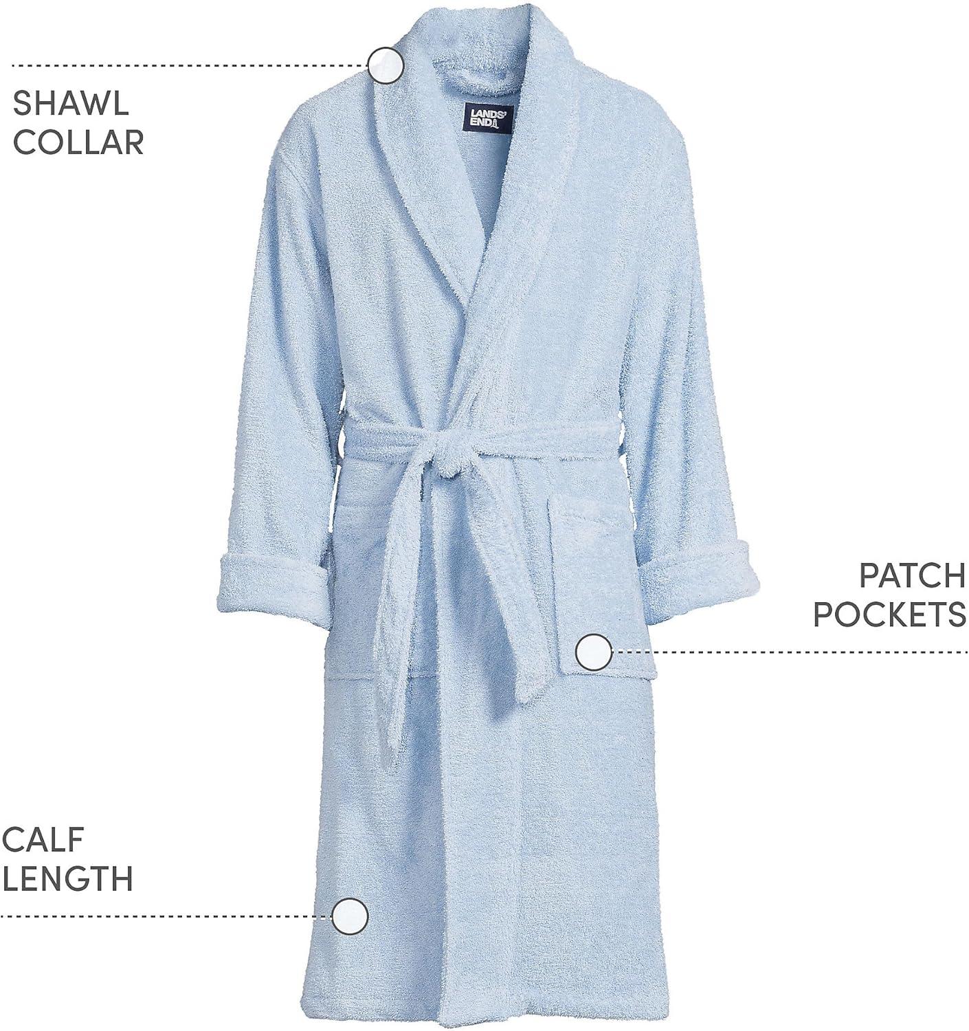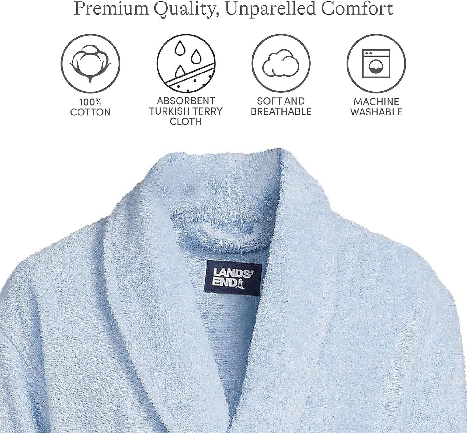 Lands’ End Men’s Full-Length Turkish Cotton Terry Bathrobe – 55″ Length | Plush, Absorbent, 2 Pockets, Spa Comfort(Soft Blue Haze)