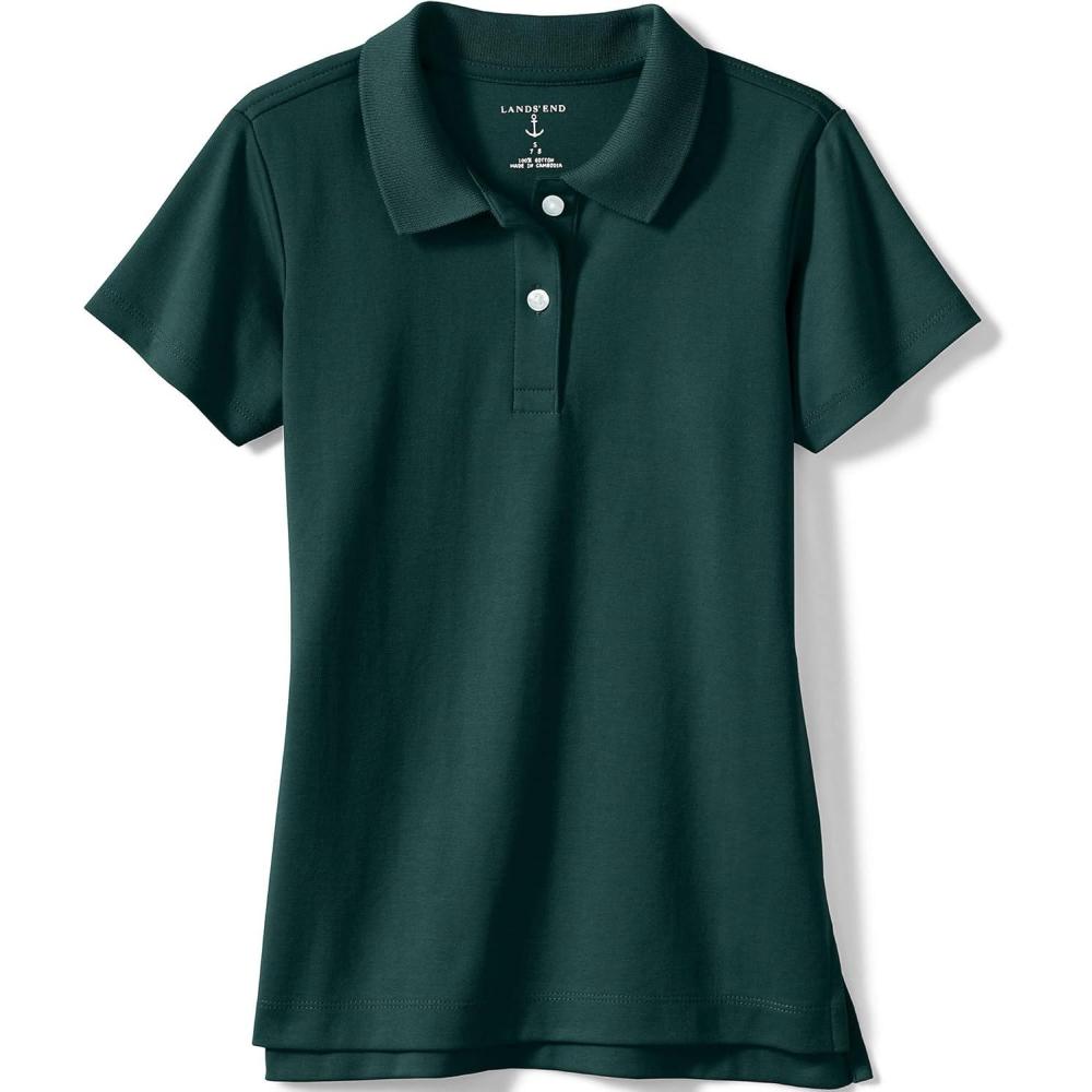 Lands’ End School Uniform Girls Short Sleeve Feminine Fit Interlock Polo Shirt(Evergreen)