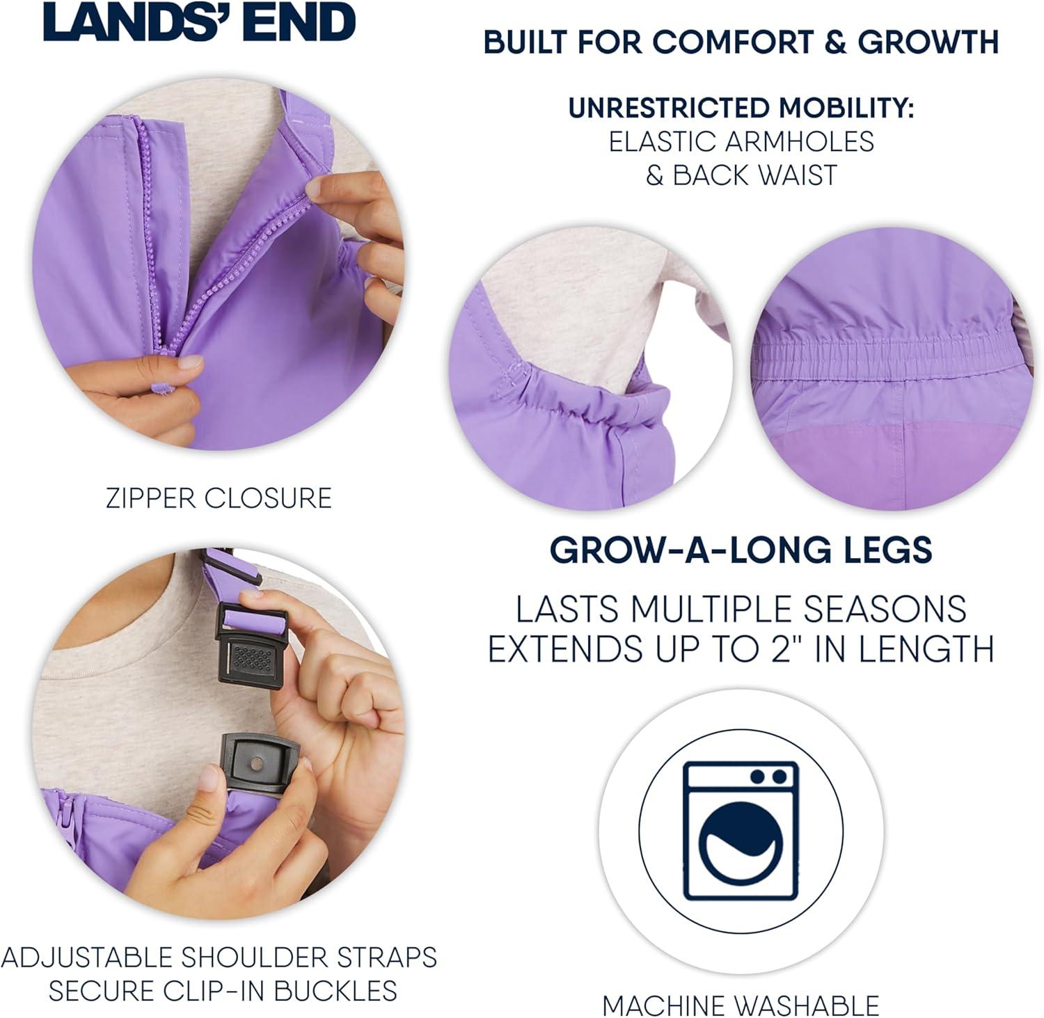 A legacy of timeless quality and dependable design, Lands’ End is committed to crafting comfortable, durable clothing for everyday life. Our Squall Snow Bib embodies that promise, making it a reliable choice for cold, snowy days. Built for winter sports, sledding, and playing in the snow, this bib’s durable nylon fabric is designed for active kids. The elastic armholes and back waist stretch allow for comfortable movement, while the rugged yet soft Taslon fabric ensures comfort. It pairs easily with a waterproof jacket, winter boots, and gloves for a complete cold-weather look and is available in a range of colors for both boys and girls. Experience a cozy and soft feel with dependable warmth. The soft, feather-like synthetic insulation provides consistent warmth, while a smooth nylon lining adds comfort and helps the bib glide on easily over clothes. The result is cozy warmth and protection, ensuring comfort when the temperature drops. This bib is also built for the elements with a waterproof TPU lamination finish that effectively seals out wind and rain. A zip closure and elastic snow gaiters help to create a secure barrier to keep cold drafts and snow out. This snow bib is designed for lasting quality and ultimate convenience. It’s built to grow with your child, featuring Grow-A-Long legs that extend up to 2 inches and adjustable shoulder straps with secure clip-in buckles that ensure a perfect fit for continued use. The reinforced Iron Knees and Seat provide an extra layer of durability and protection when kneeling or sitting in the snow. For easy on and off, zippered ankles are designed to fit over boots and shoes, and two hip pockets with a velcro closure secure belongings. It is also machine washable for easy care.
