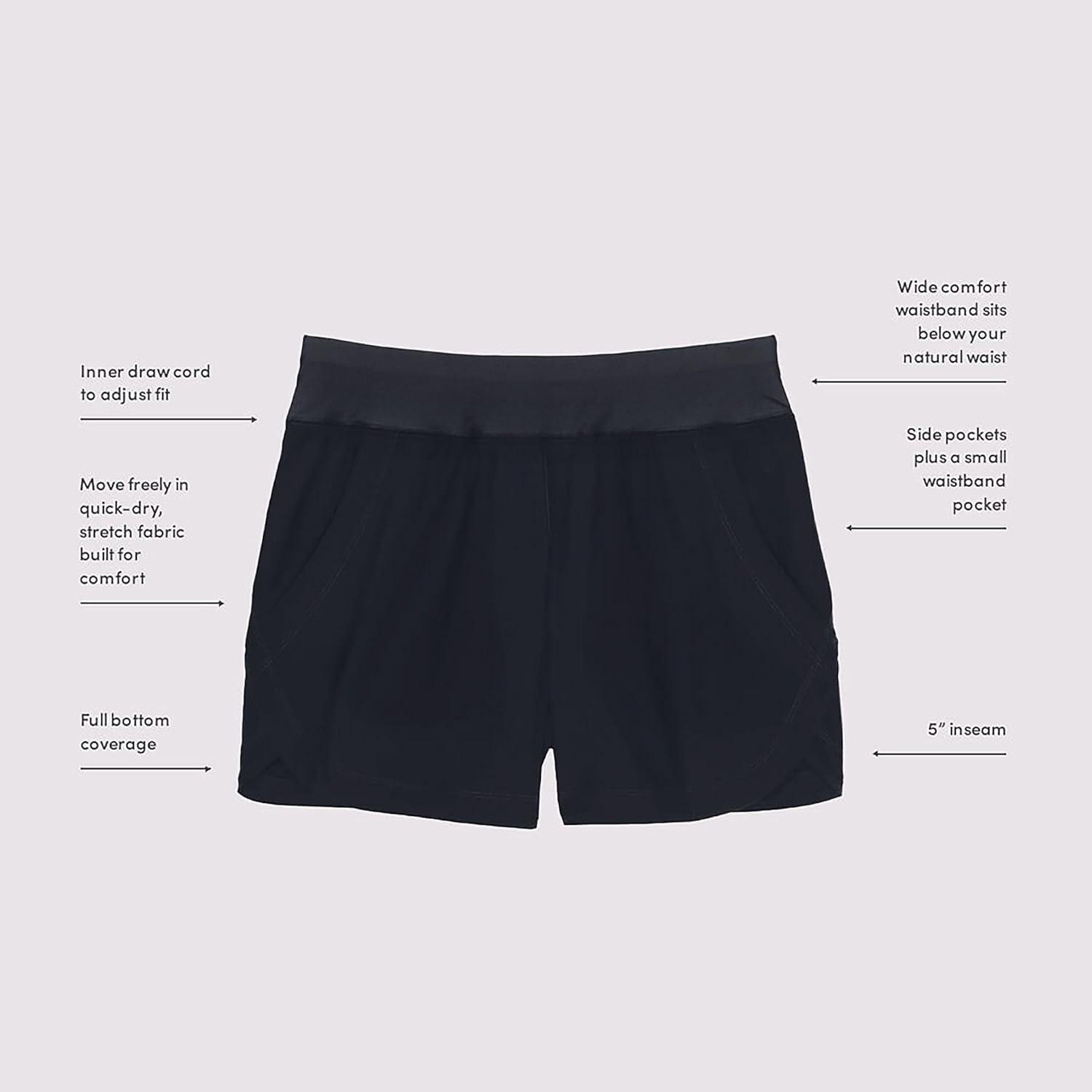 Lands’ End Women’s 5″ Quick Dry Elastic Waist Board Shorts Swim Cover-up Shorts with Panty(Black)