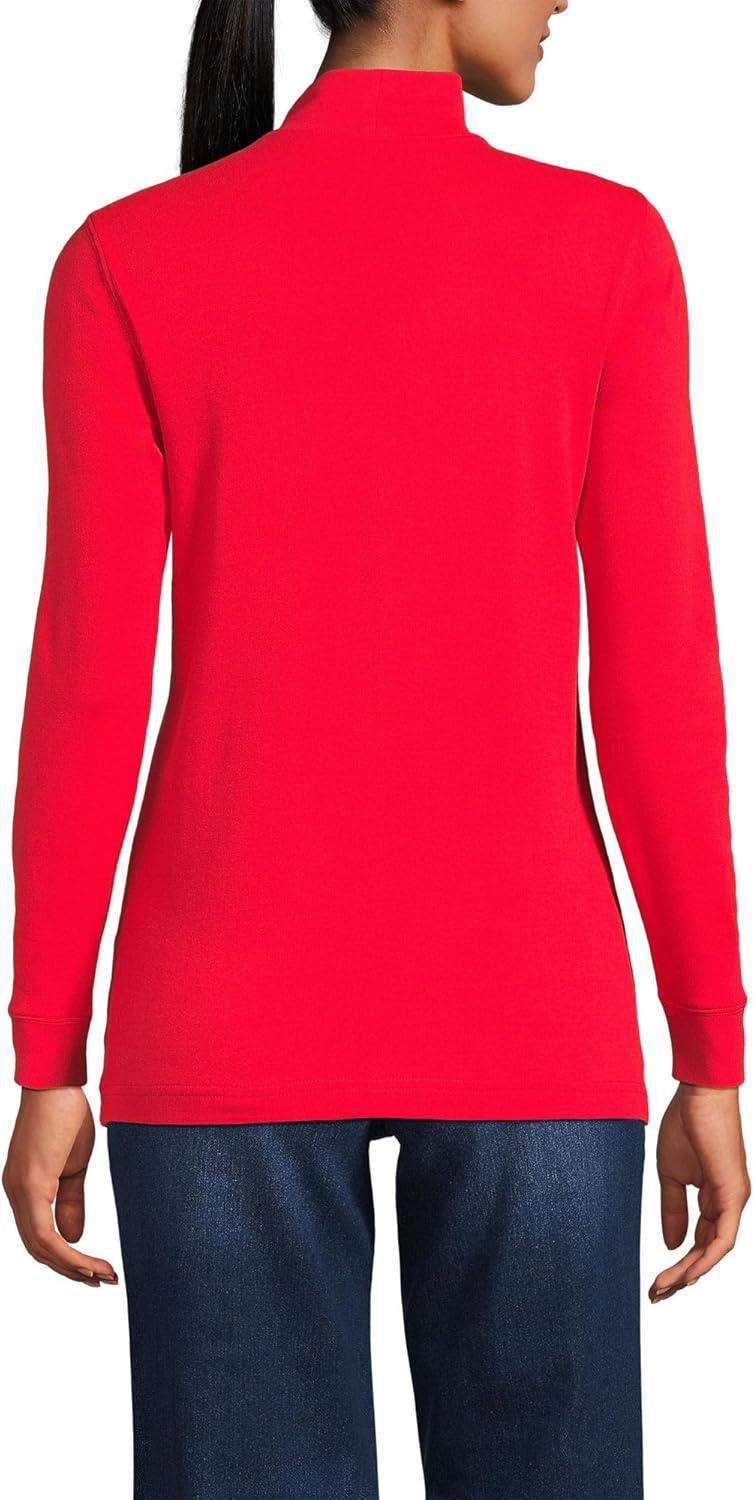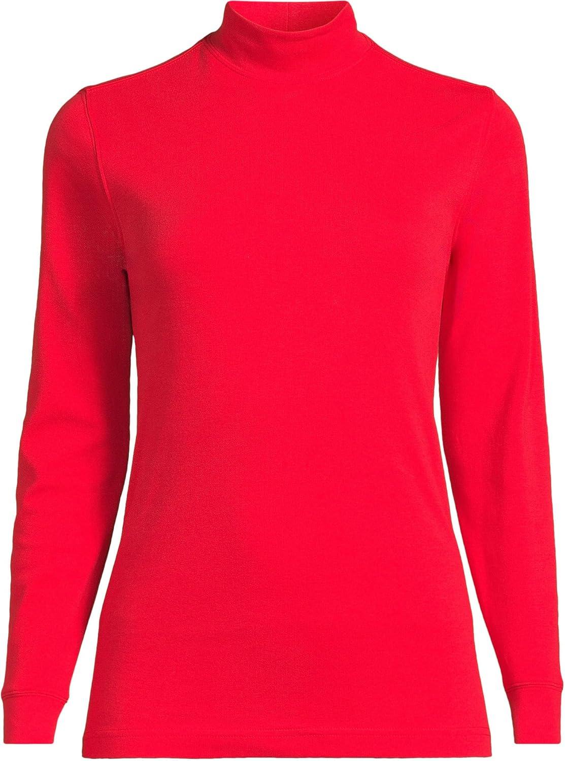 Lands’ End Women’s Relaxed Cotton Long Sleeve Mock Turtleneck Shirt(Compass Red)
