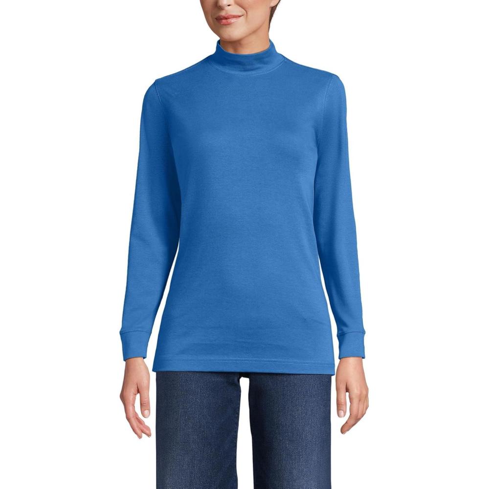 Lands’ End Women’s Relaxed Cotton Long Sleeve Mock Turtleneck Shirt(Muted Cobalt Blue)