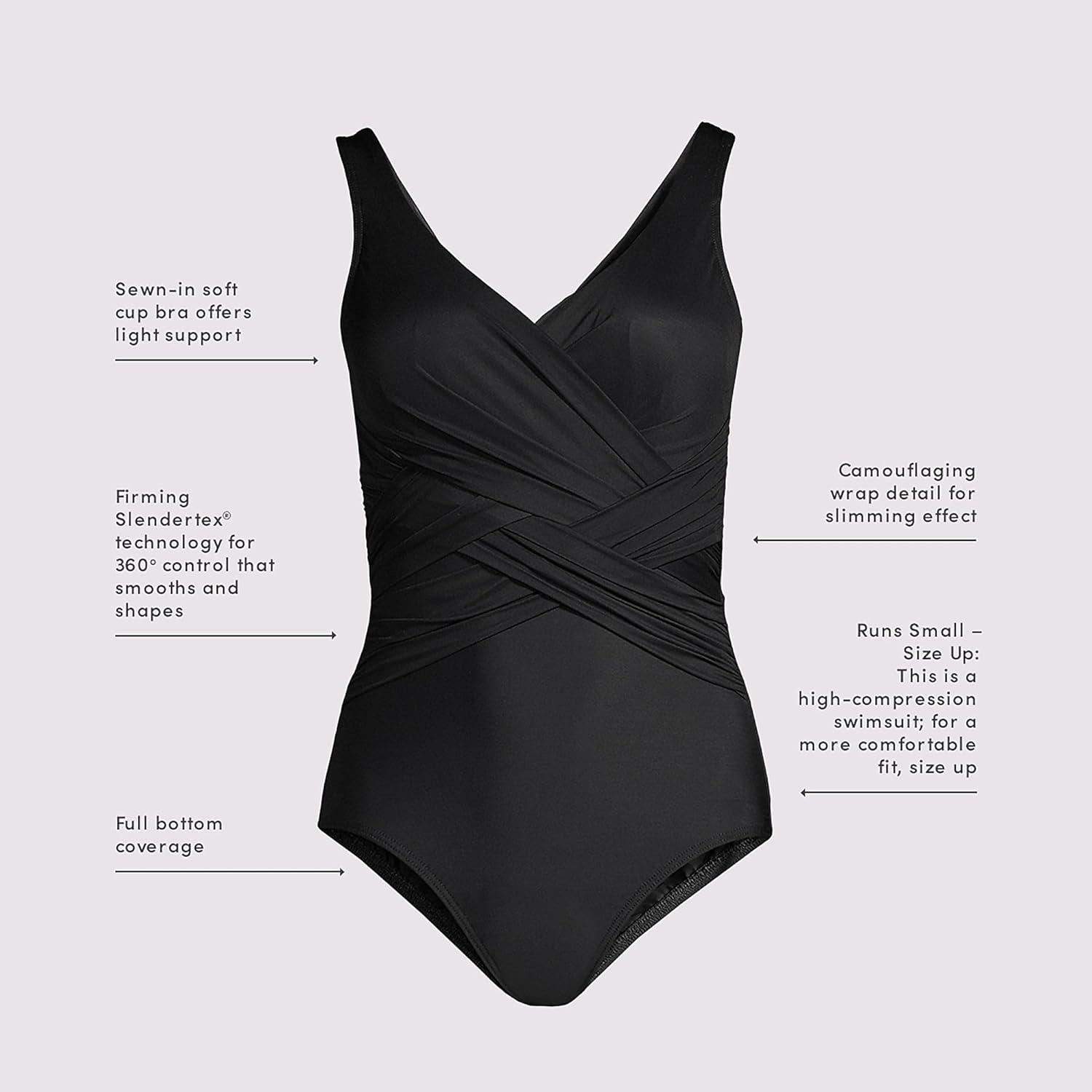 Lands’ End Women’s SlenderSuit Wrap One Piece Swimsuit(Black)