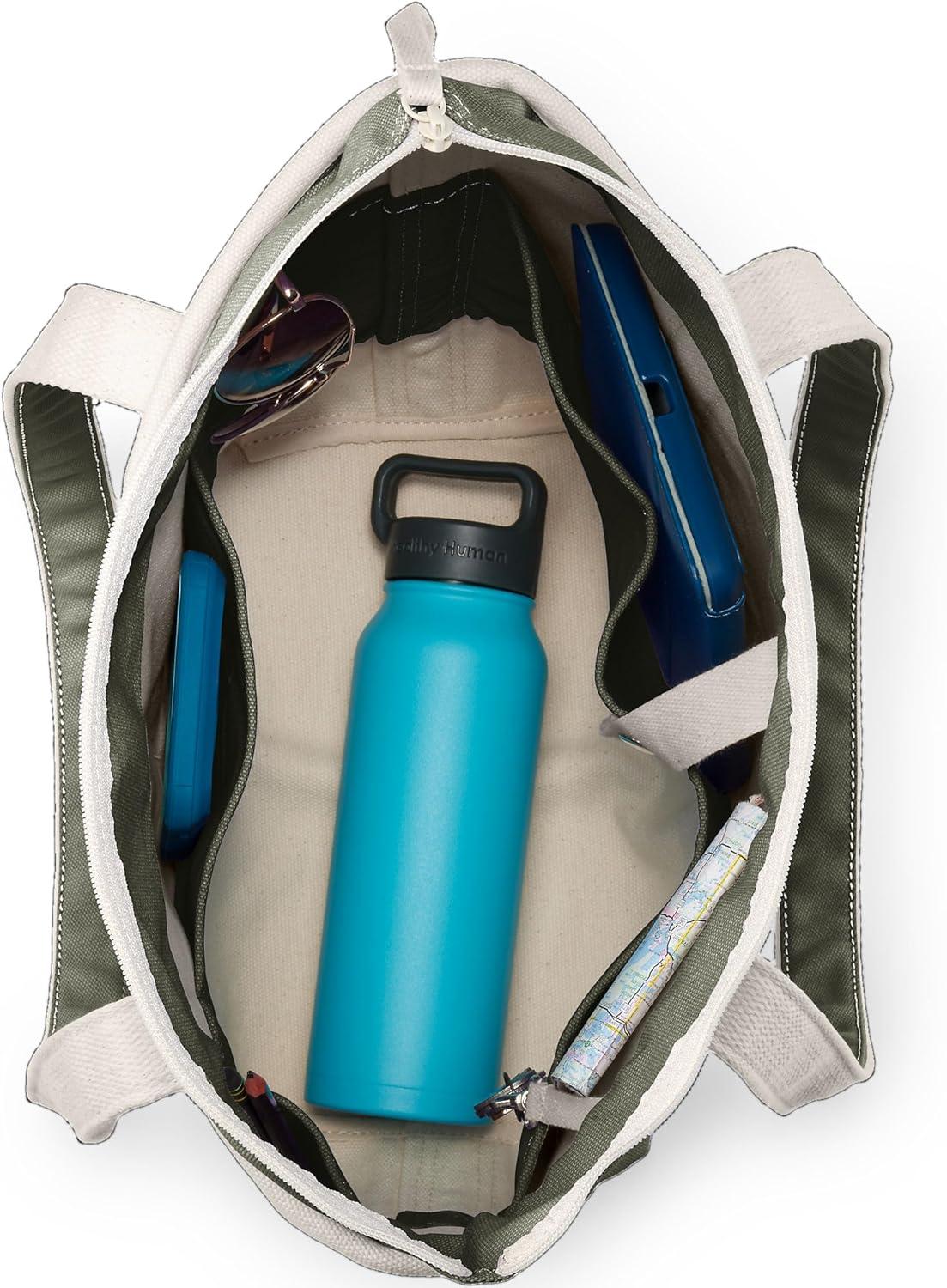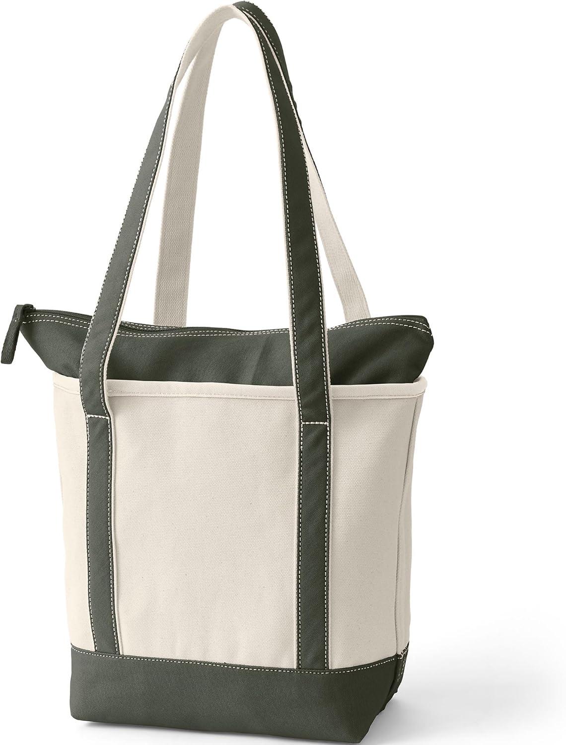 Lands’ End Zip Top Long Handle Canvas Tote Bag(Natural/Dark Olive Green)