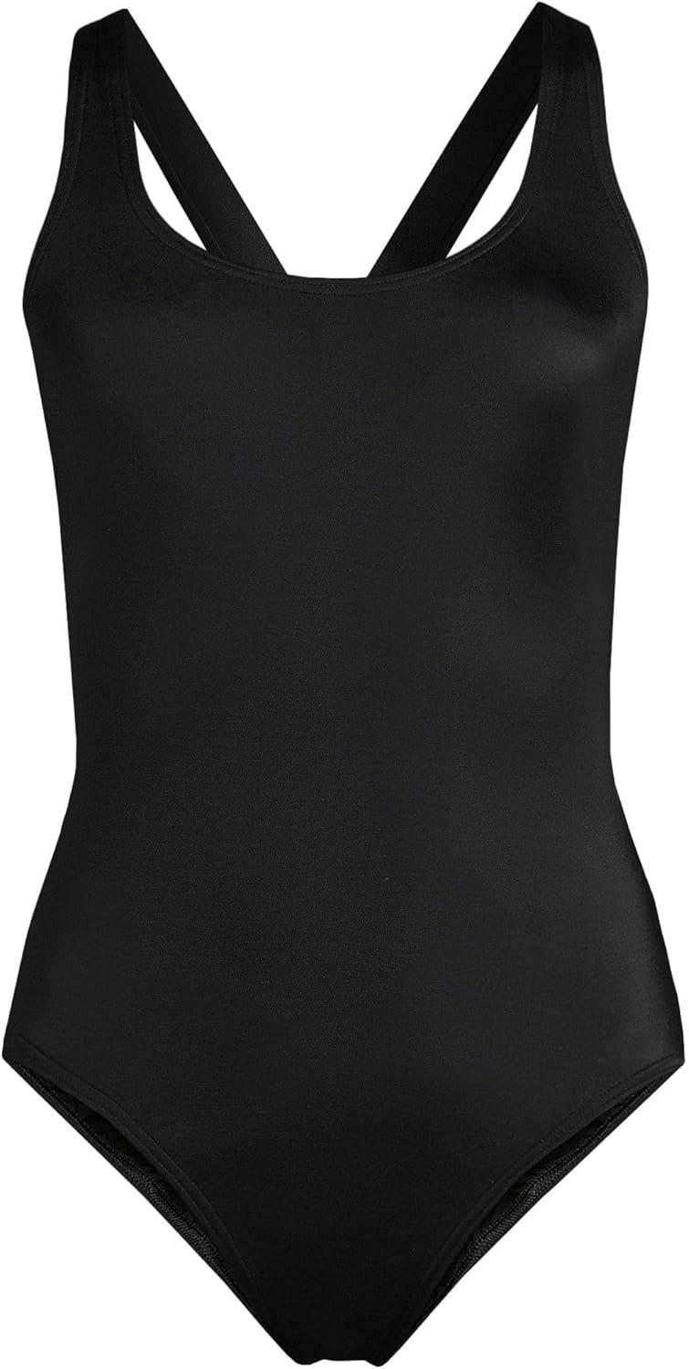 Lands’ End Women’s Chlorine Resistant Soft Cup Tugless Sporty One Piece Swimsuit(Black)