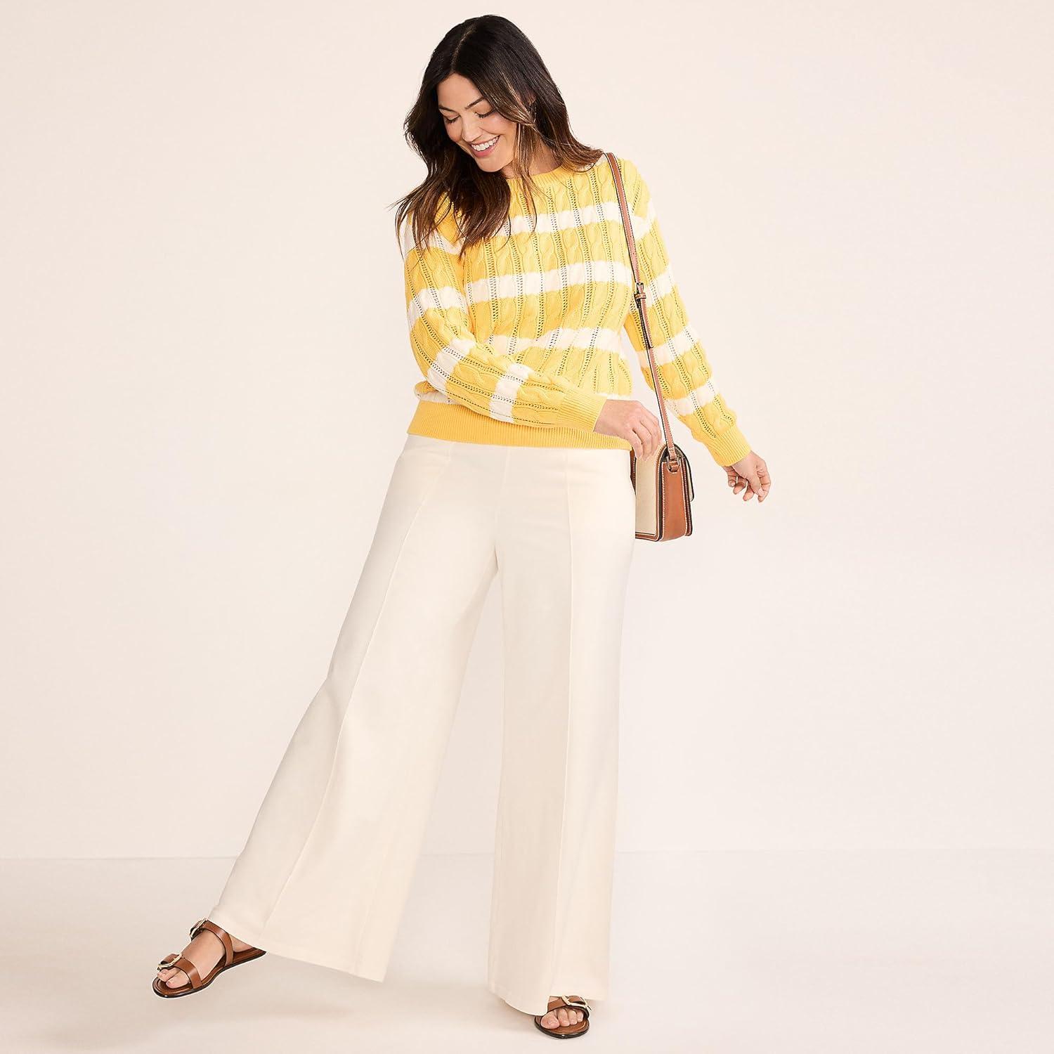 Lands’ End Women’s Starfish High Rise Palazzo Pants(Ivory)